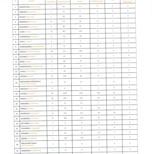 Dodajmy, że na biennale wpłynęło 4738 prac z 29 krajów. Jury do zestawu wystawowego zakwalifikowano 769 prac z 24 krajów.