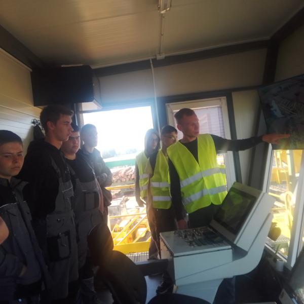 Z wielkim zaangażowaniem opowiedzieli o początkach zakładu oraz o przejściu do zautomatyzowanej obróbki drewna. Zaprezentowali również maszyny i całą linię produkcyjną, chętnie odpowiadając na pytania uczniów. Właściciel zaznaczył, że wszystkie elementy produkcji drewna w jego zakładzie są wykorzystywane. Spotkanie zakończyło się słodkim poczęstunkiem.