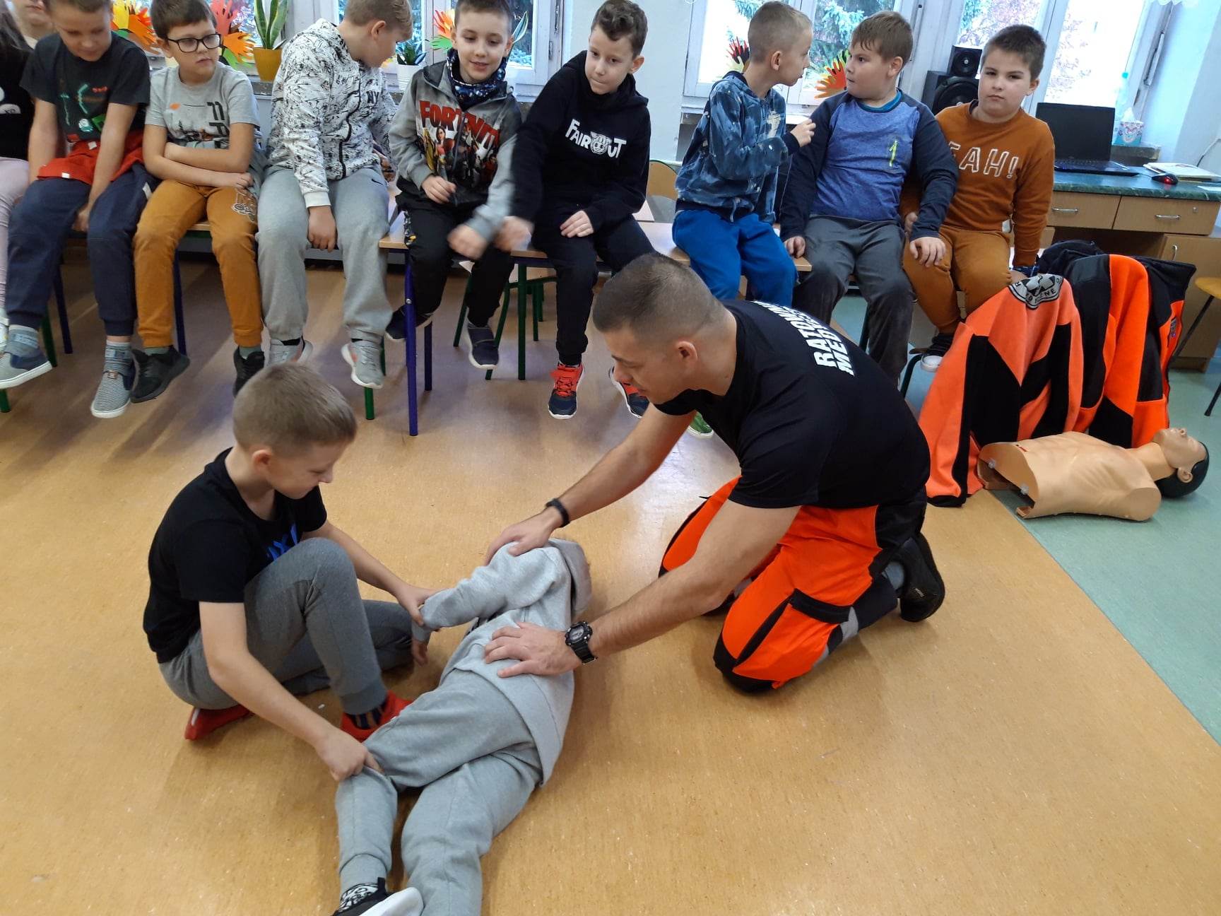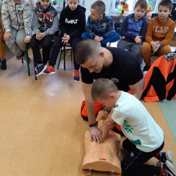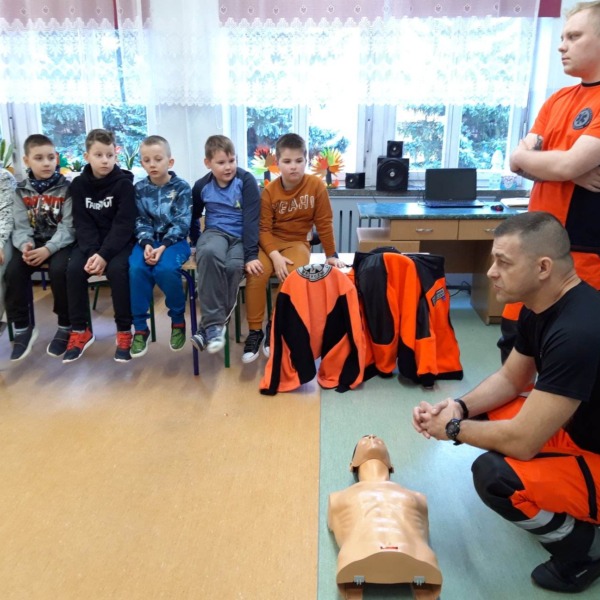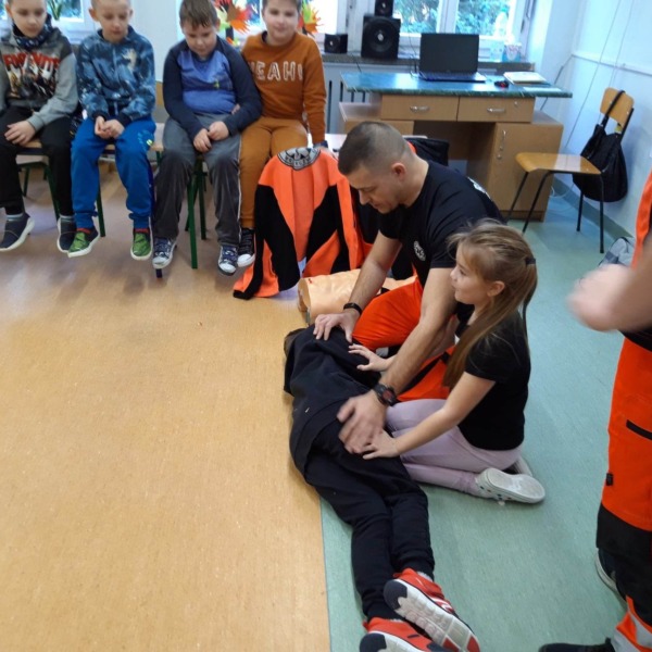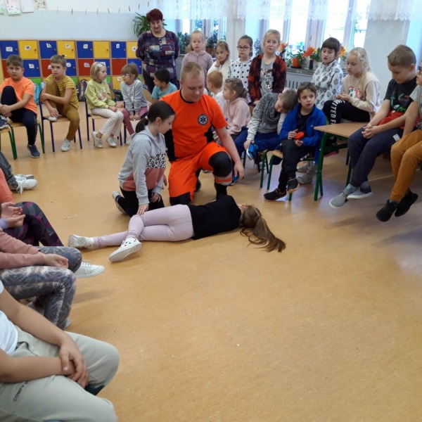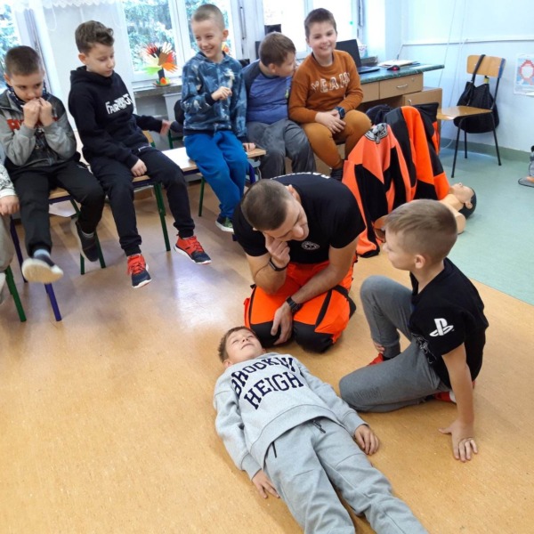 Ratownicy ze Stacji Pogotowia Ratunkowego w Białej Podlaskiej przeprowadzili zajęcia z pierwszej pomocy dla uczniów szkoły podstawowej. Dzieci z zaangażowaniem słuchały ratowników. Zdobytą wiedzę wykorzystały w ćwiczeniach praktycznych, układając chorego w bezpiecznej pozycji czy wykonując reanimację na fantomie.