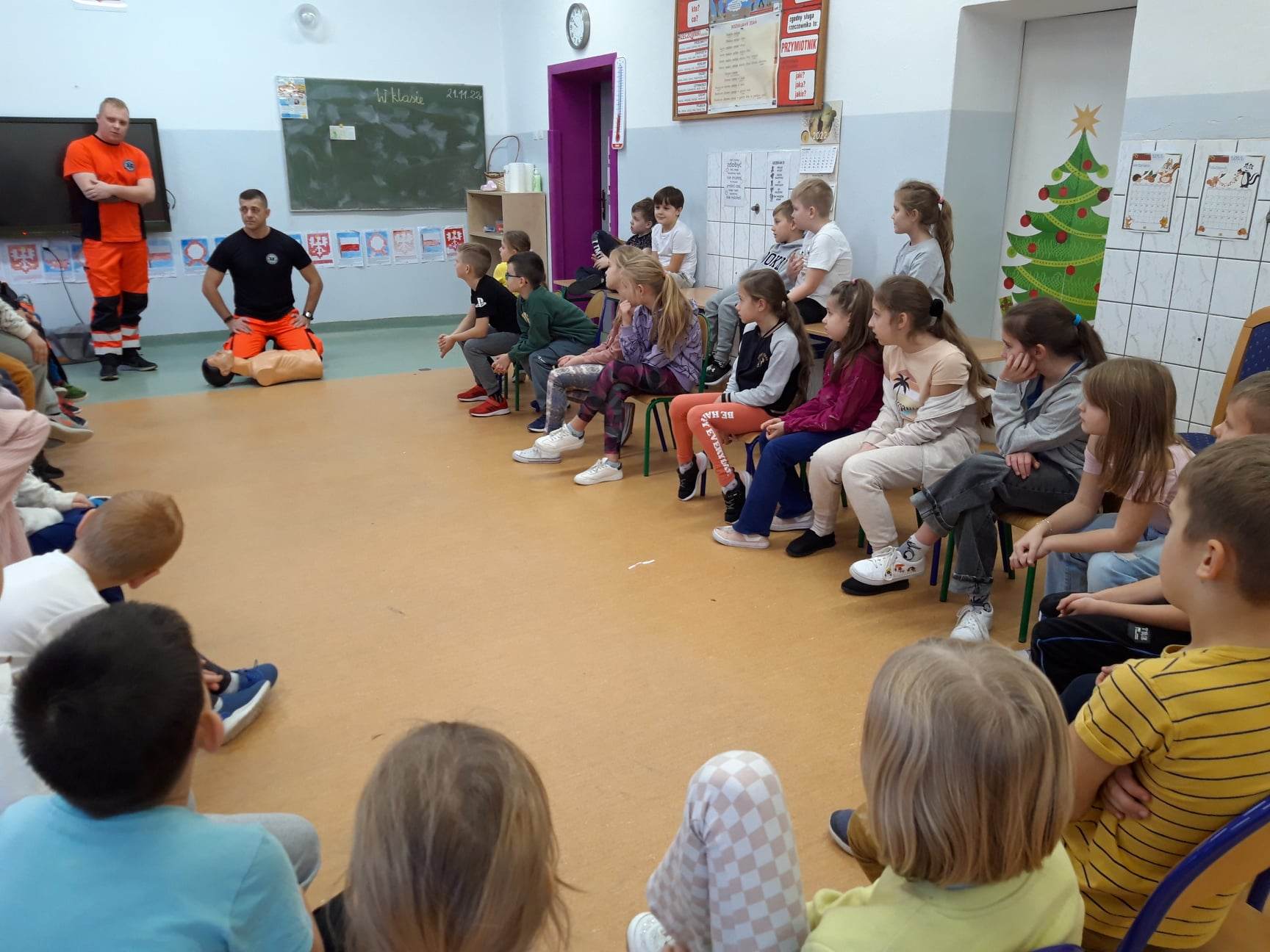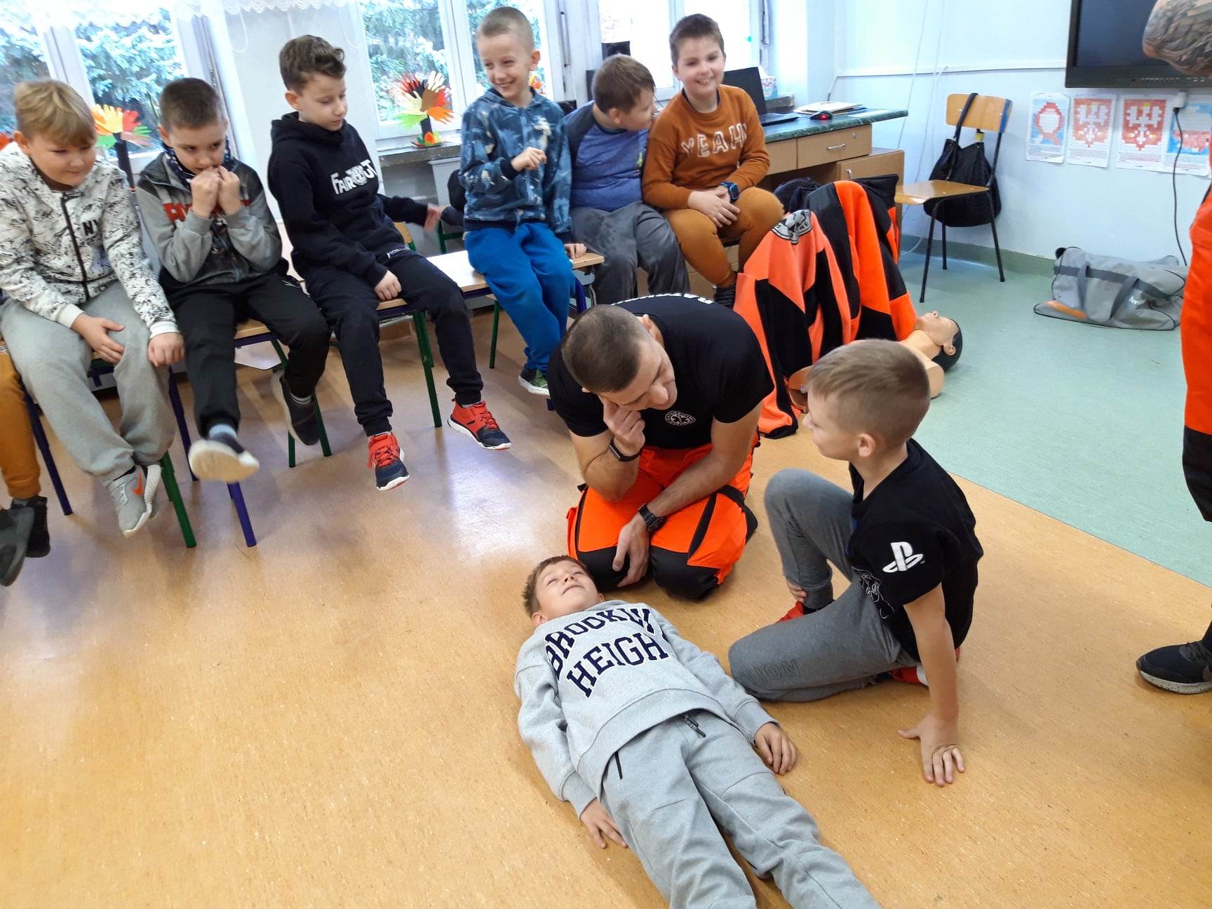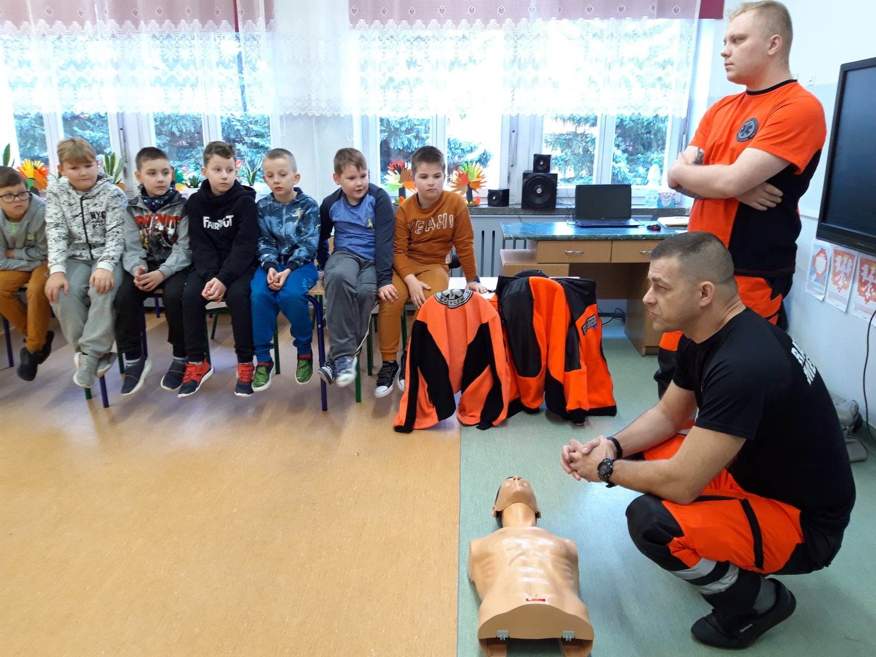 Ratownik Tomasz Oleszczuk oraz ratownik Damian Sacharczuk ze Stacji Pogotowia Ratunkowego SPZOZ w Białej Podlaskiej przeprowadzili zajęcia z zakresu udzielania pierwszej pomocy przedmedycznej dla uczniów Szkoły Podstawowej nr 6.