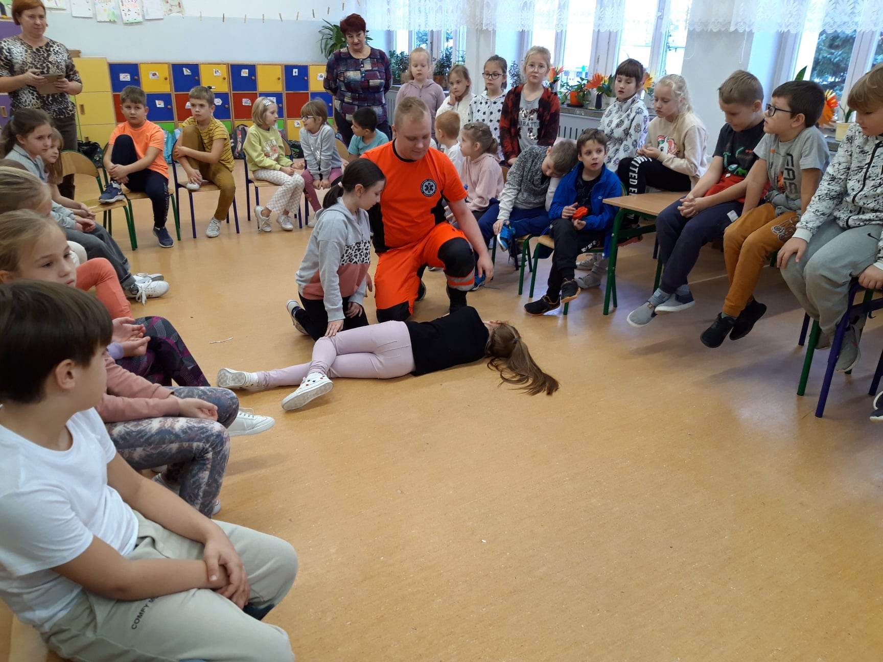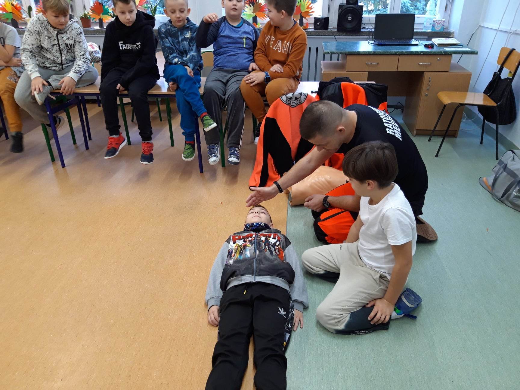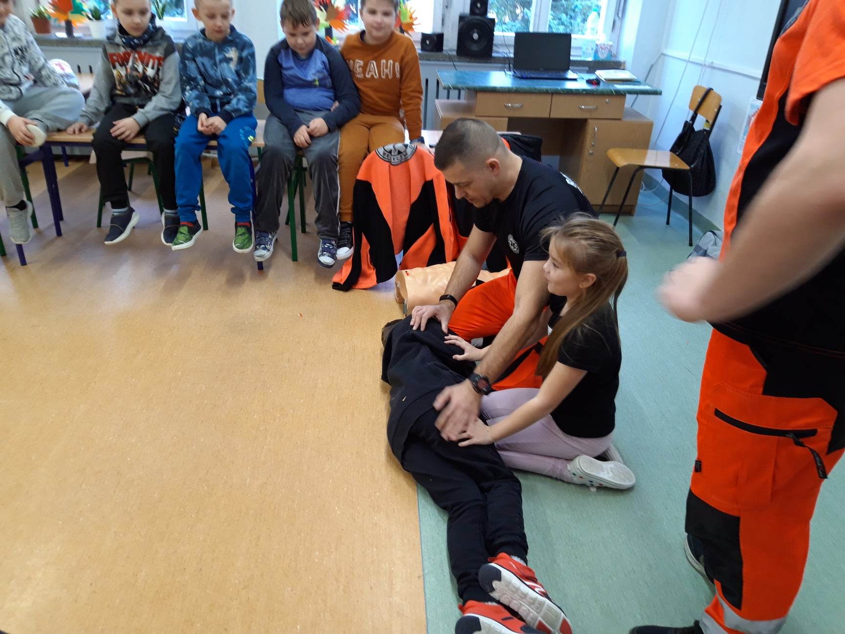 Ratownik Tomasz Oleszczuk oraz ratownik Damian Sacharczuk ze Stacji Pogotowia Ratunkowego SPZOZ w Białej Podlaskiej przeprowadzili zajęcia z zakresu udzielania pierwszej pomocy przedmedycznej dla uczniów Szkoły Podstawowej nr 6.