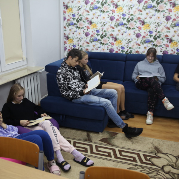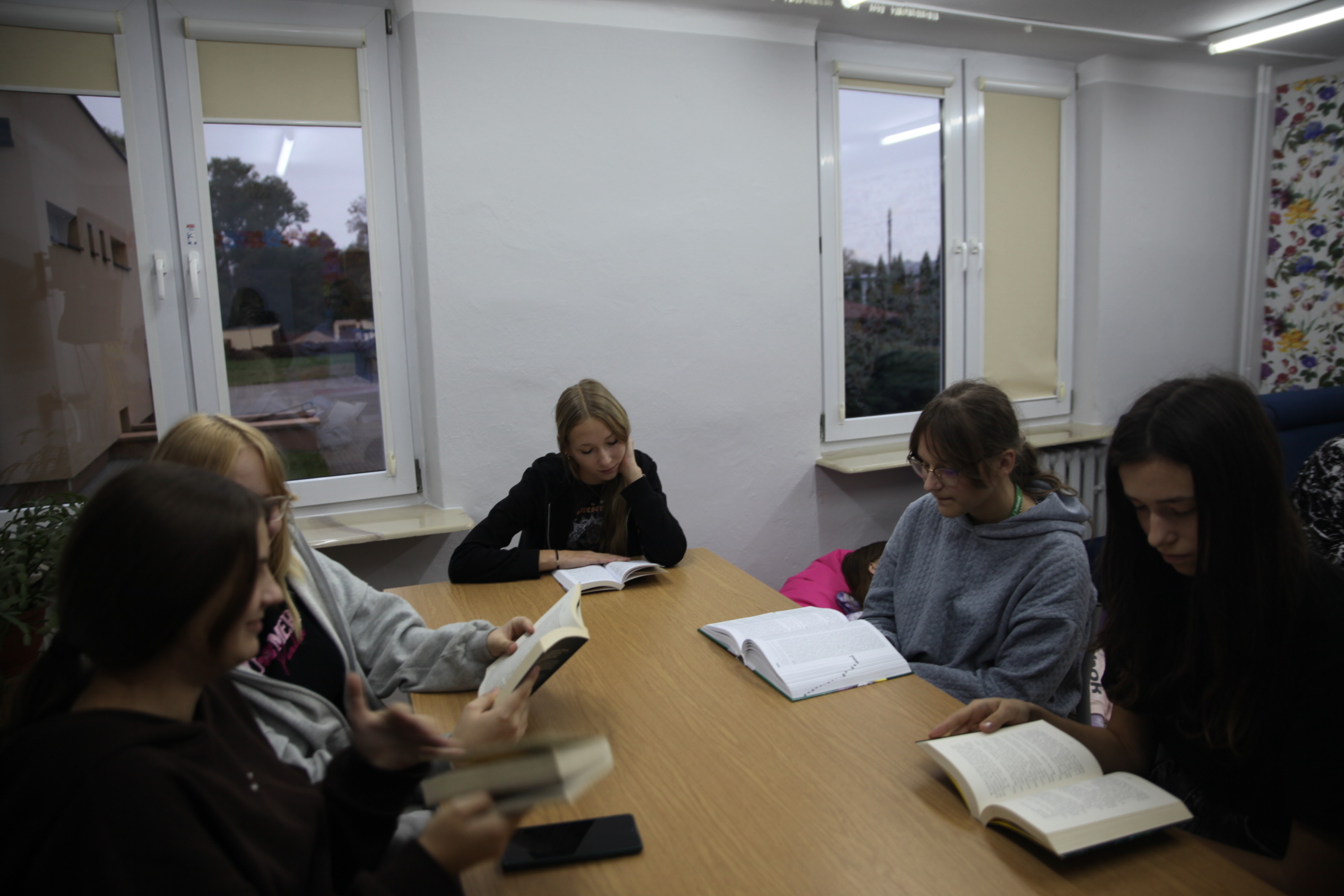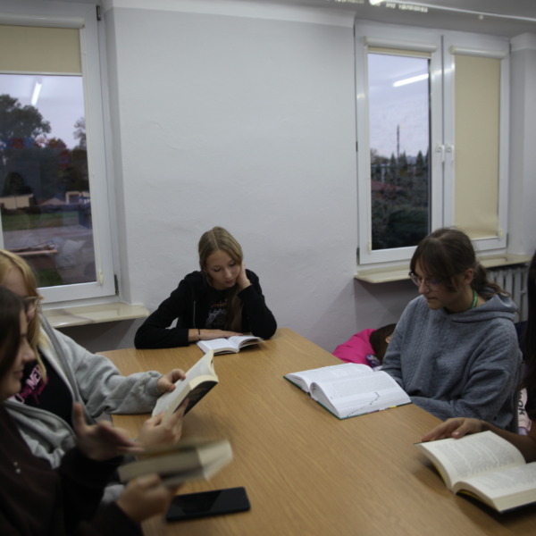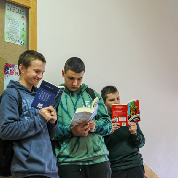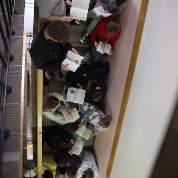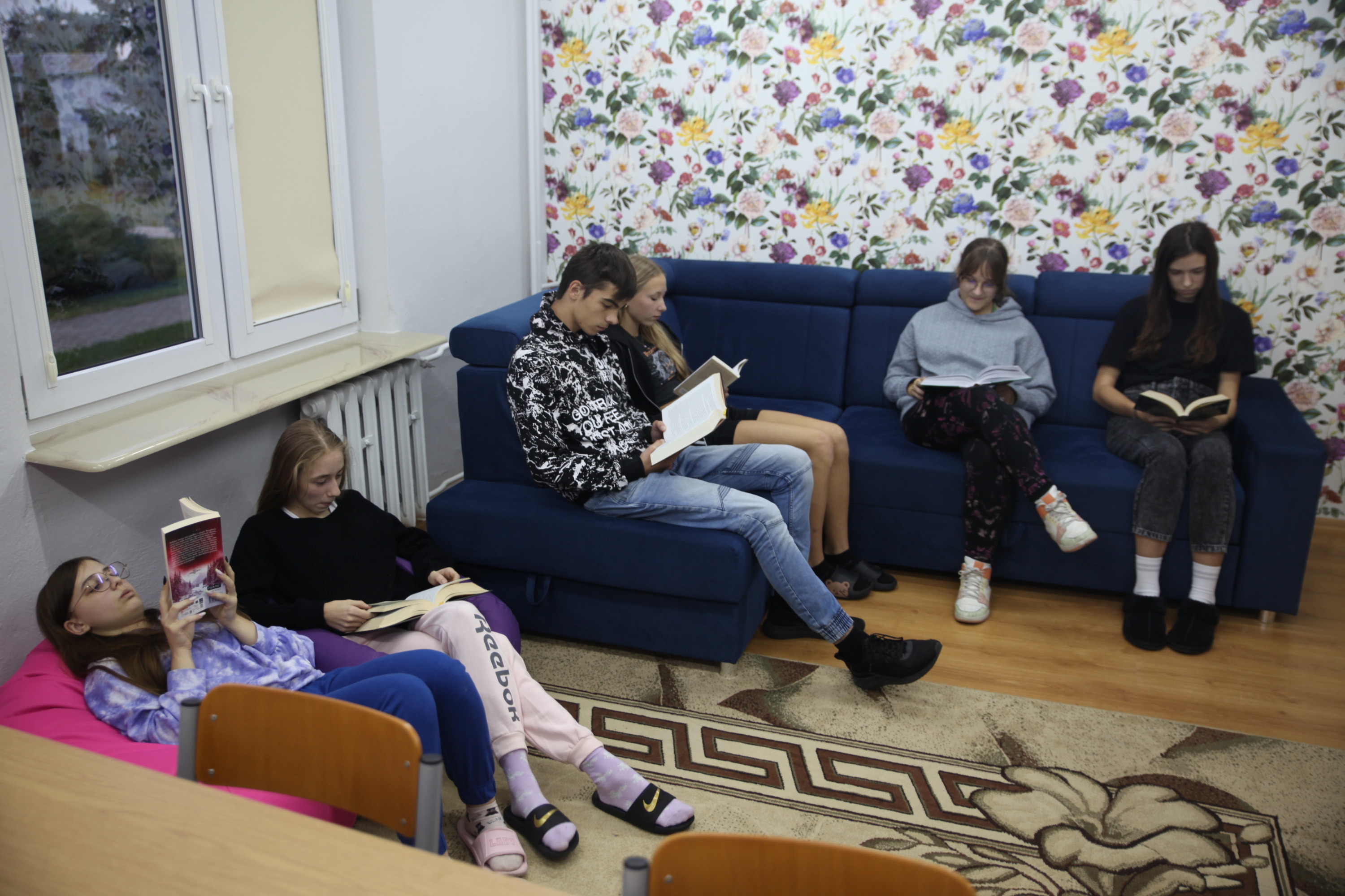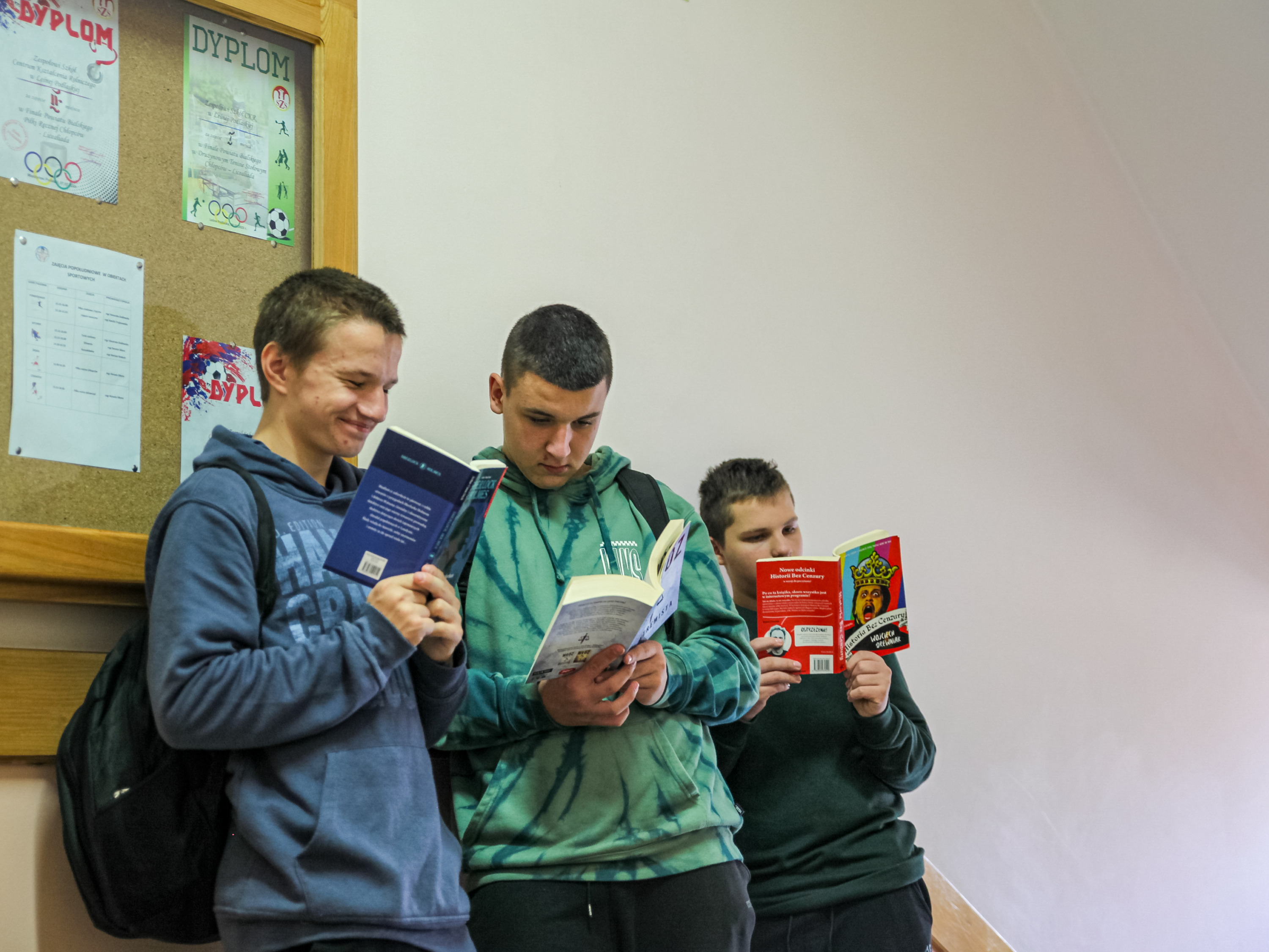 Uczniowie czytali w różnych miejscach na korytarzu, w salach, w internacie, a także w altance. Była to doskonała okazja do oderwania się od ekranów smartfonów i przeniesienia się w świat wyobraźni.