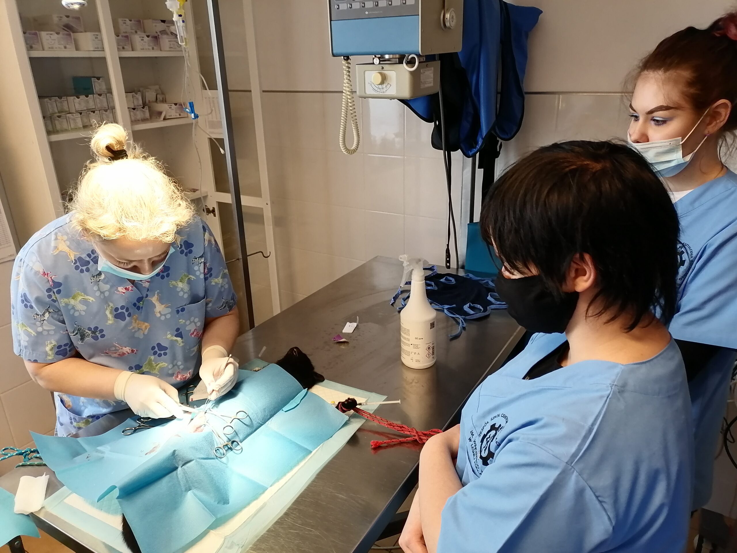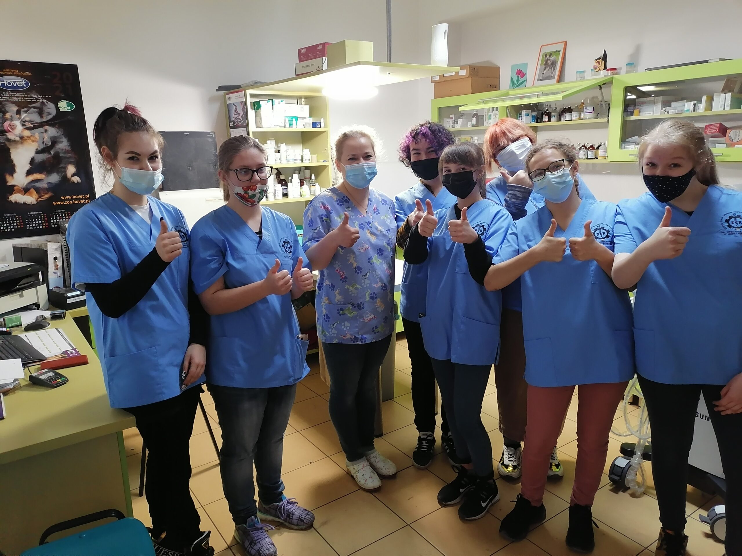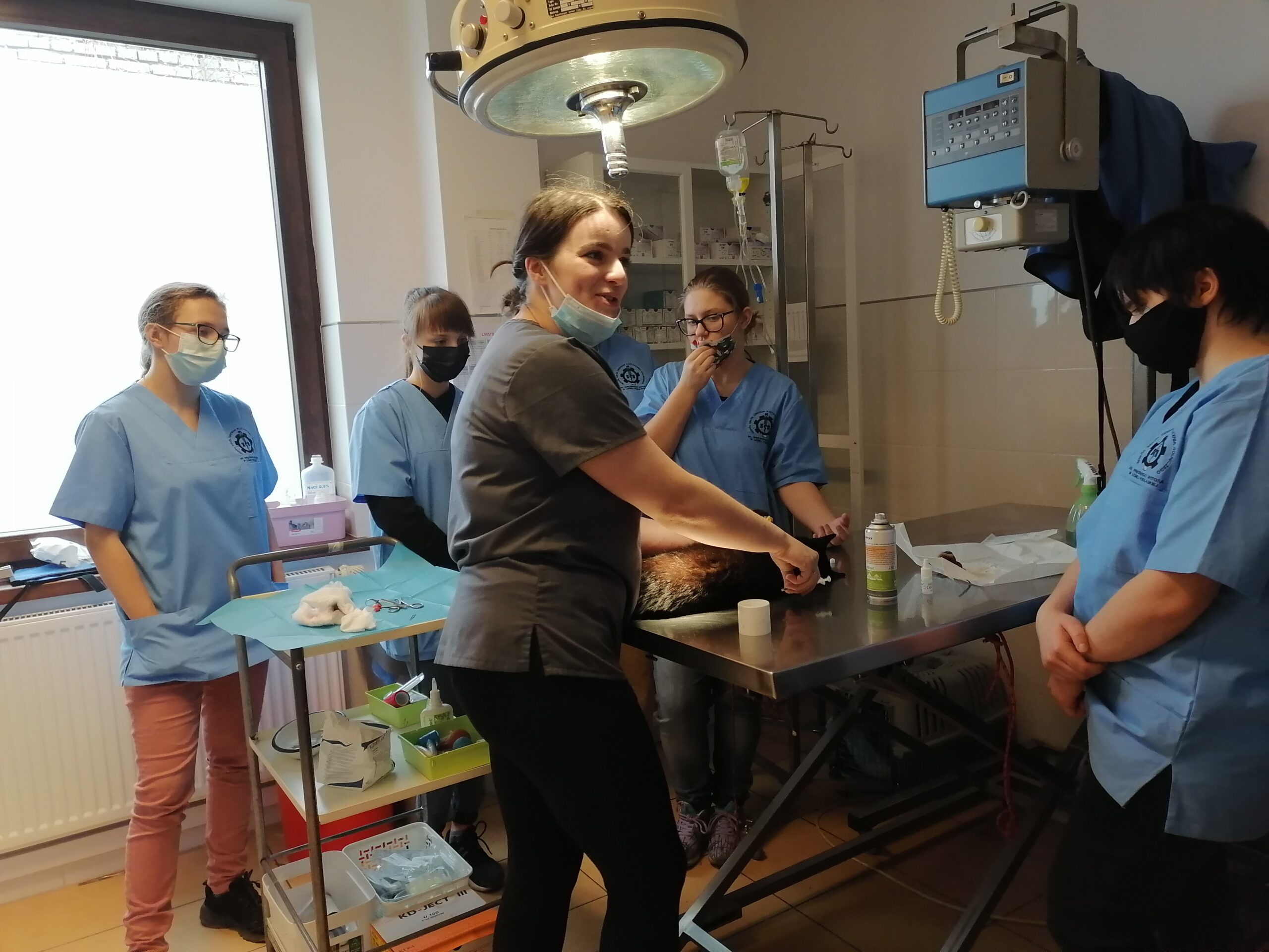 Lekarz weterynarii Pani Paulina Miłosz, właścicielka gabinetu przedstawiła zakres świadczonych przez lecznicę usług, zapoznała ze specjalistycznym sprzętem weterynaryjnym, omówiła także przebieg poszczególnych zabiegów. Młodzież brała udział w przygotowaniu zwierząt do zabiegów kastracji i sterylizacji, obserwowała wykonywanie kolejnych etapów powyższych zabiegów, następnie pod nadzorem lekarzy weterynarii wykonywała iniekcje podskórne. Dzięki zajęciom uczniowie pogłębili swoją wiedzę teoretyczną i mogli doskonalić umiejętności praktyczne w realnych warunkach pracy.