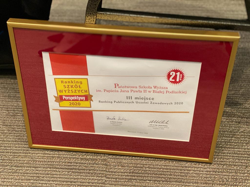 Państwowa Szkoła Wyższa im. Papieża Jana Pawła II w Białej Podlaskiej znalazła się na III miejscu w Rankingu Szkół Wyższych Perspektywy 2020. Uczelnia uplasowała się w czołówce 34 państwowych wyższych szkół zawodowych z całego kraju.