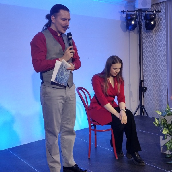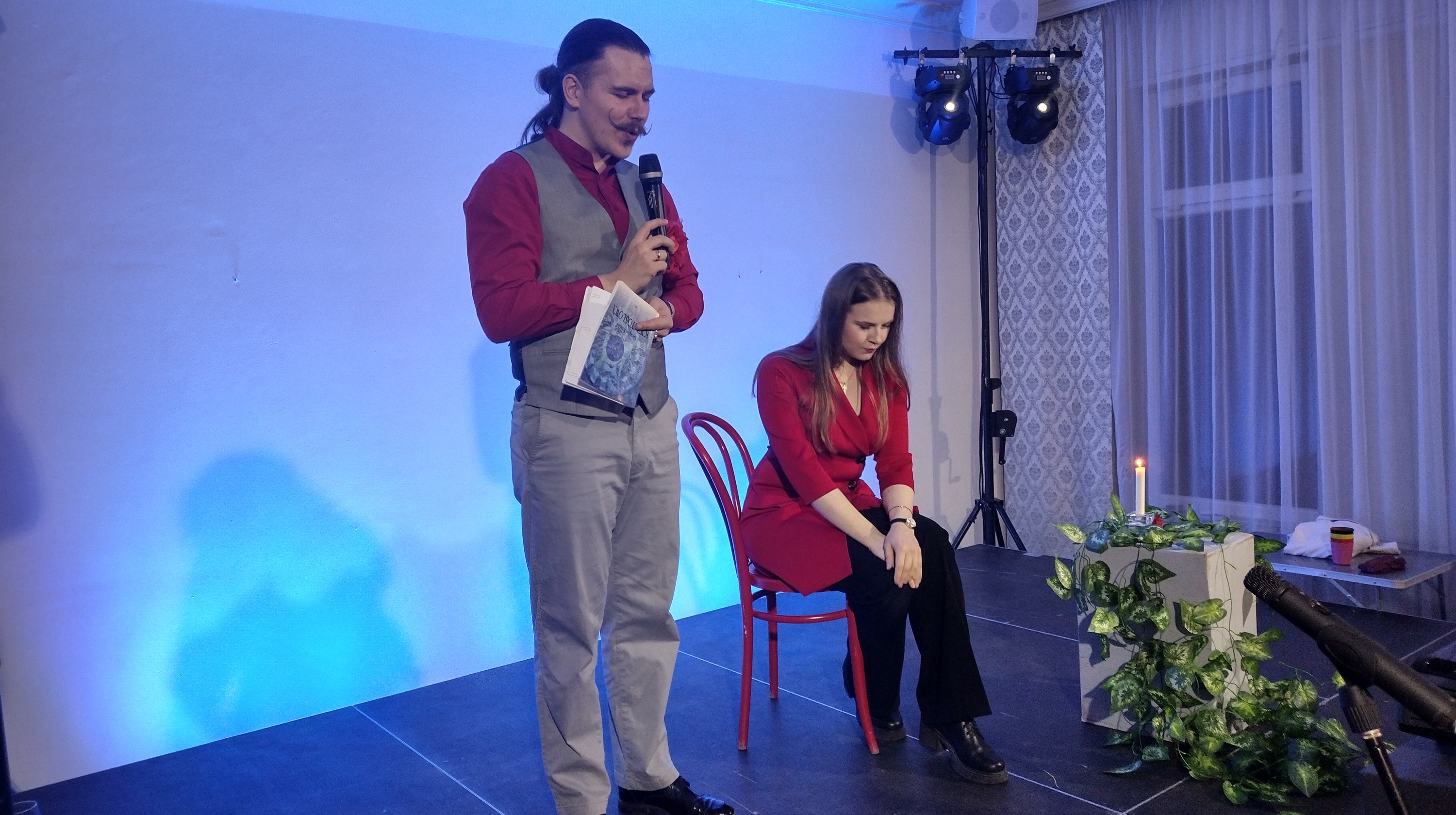 W tym czasie na scenie pojawili się Helena i Andrzej Antsipenka z bialskiego ,,Teatru Słowa” odgrywając przedstawienie poetycko-wokalne opwiadające o zauroczeniu, fascynacji i miłości dwojga kochanków.