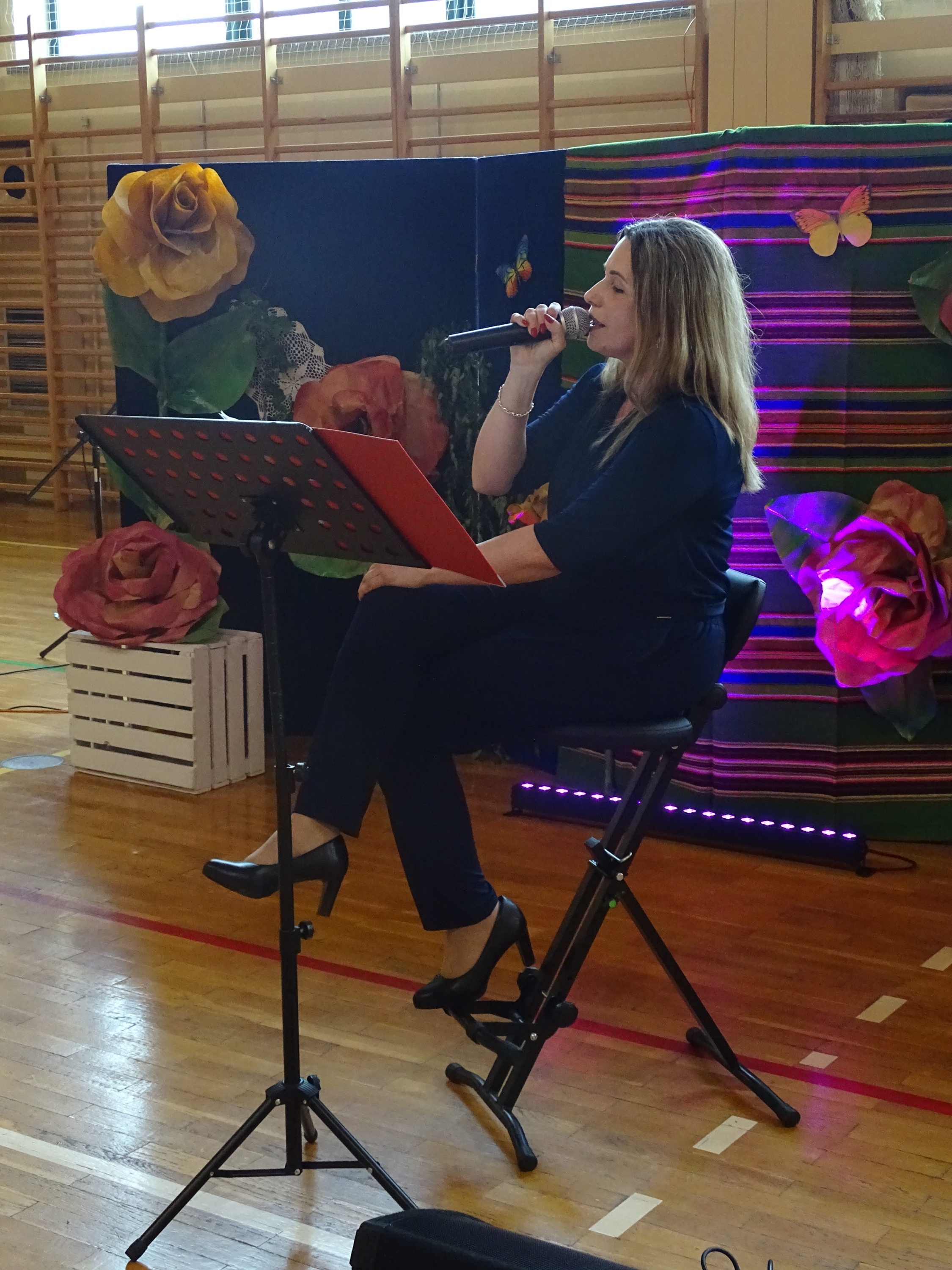 Jednym z kolejnych punktów programu był występ Pani Moniki Głowackiej, której udało się porwać niektórych widzów do tańca! Całe wydarzenie uświetnił koncert Pawła Tokarskiego oraz Magdaleny Sinkiewicz, którzy wprowadzili wszystkich w niesamowity klimat! Pomiędzy muzycznymi występami miał miejsce wspaniały pokaz tańca zumby w wykonaniu mam oraz uczennic z ZPO w Łomazach.