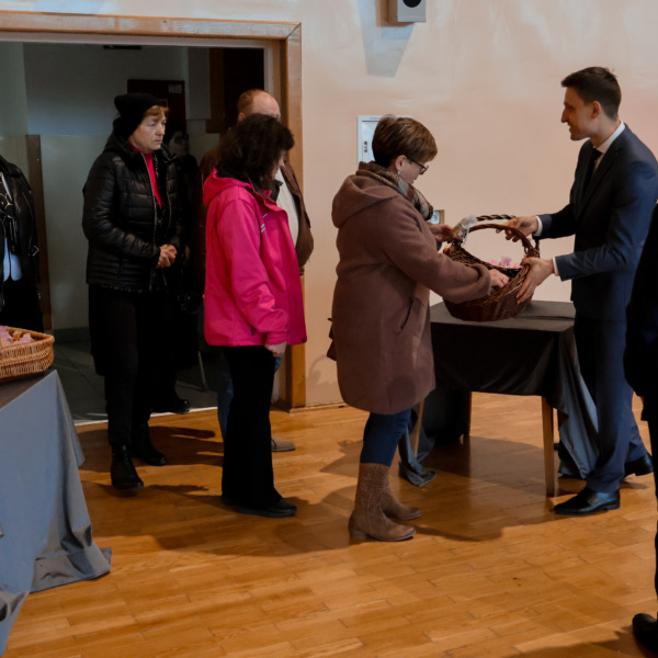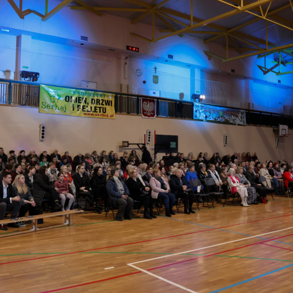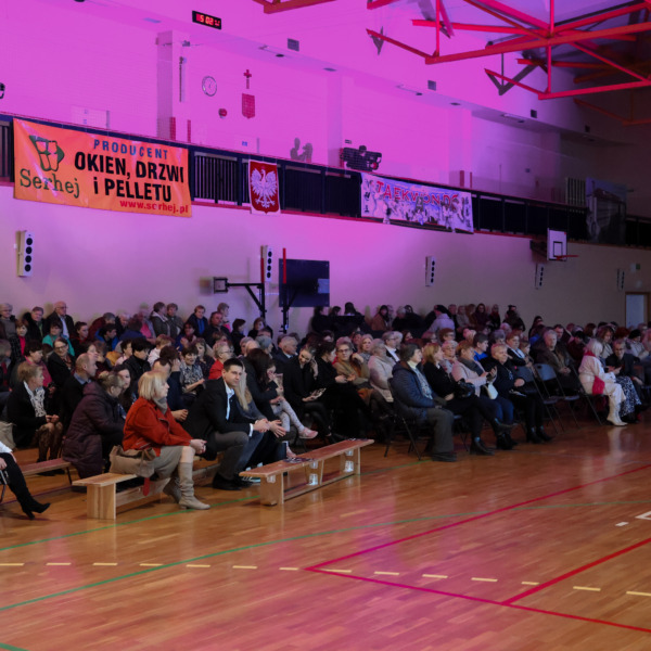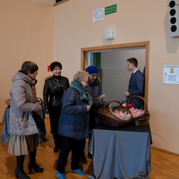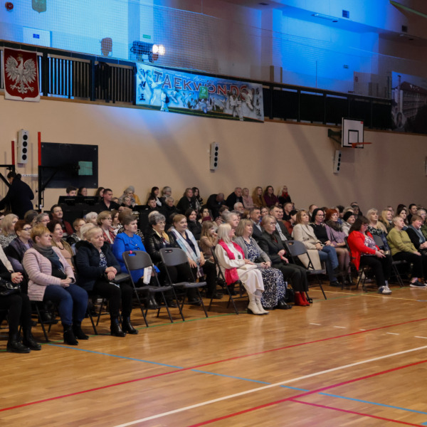 Przed godziną 17.00 hala Zespołu Placówek Oświatowych w Łomazach zaczęła się licznie zapełniać. Jeszcze przed zajęciem miejsc, wszystkie Panie zostały obdarowane małym, słodkim co nieco.