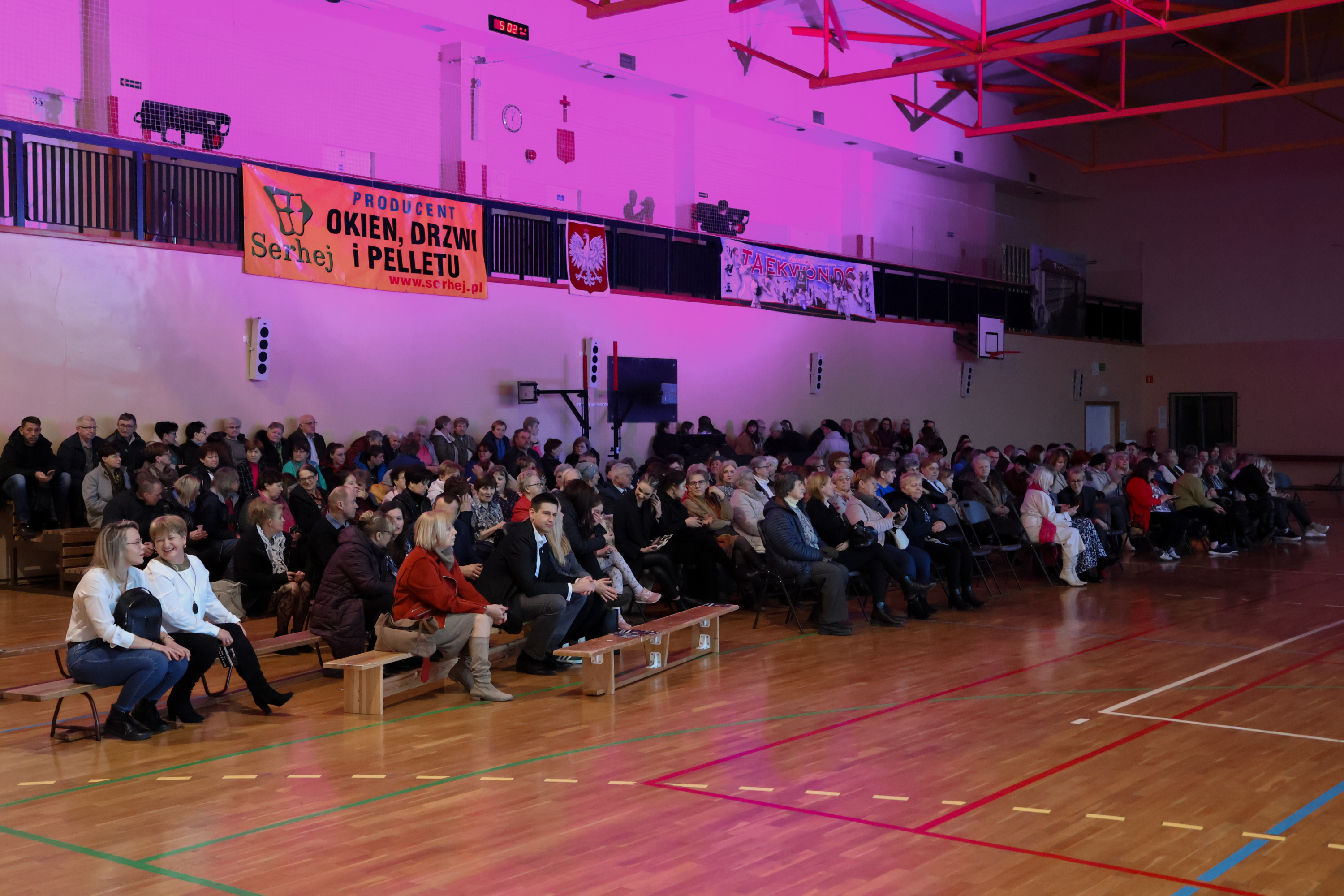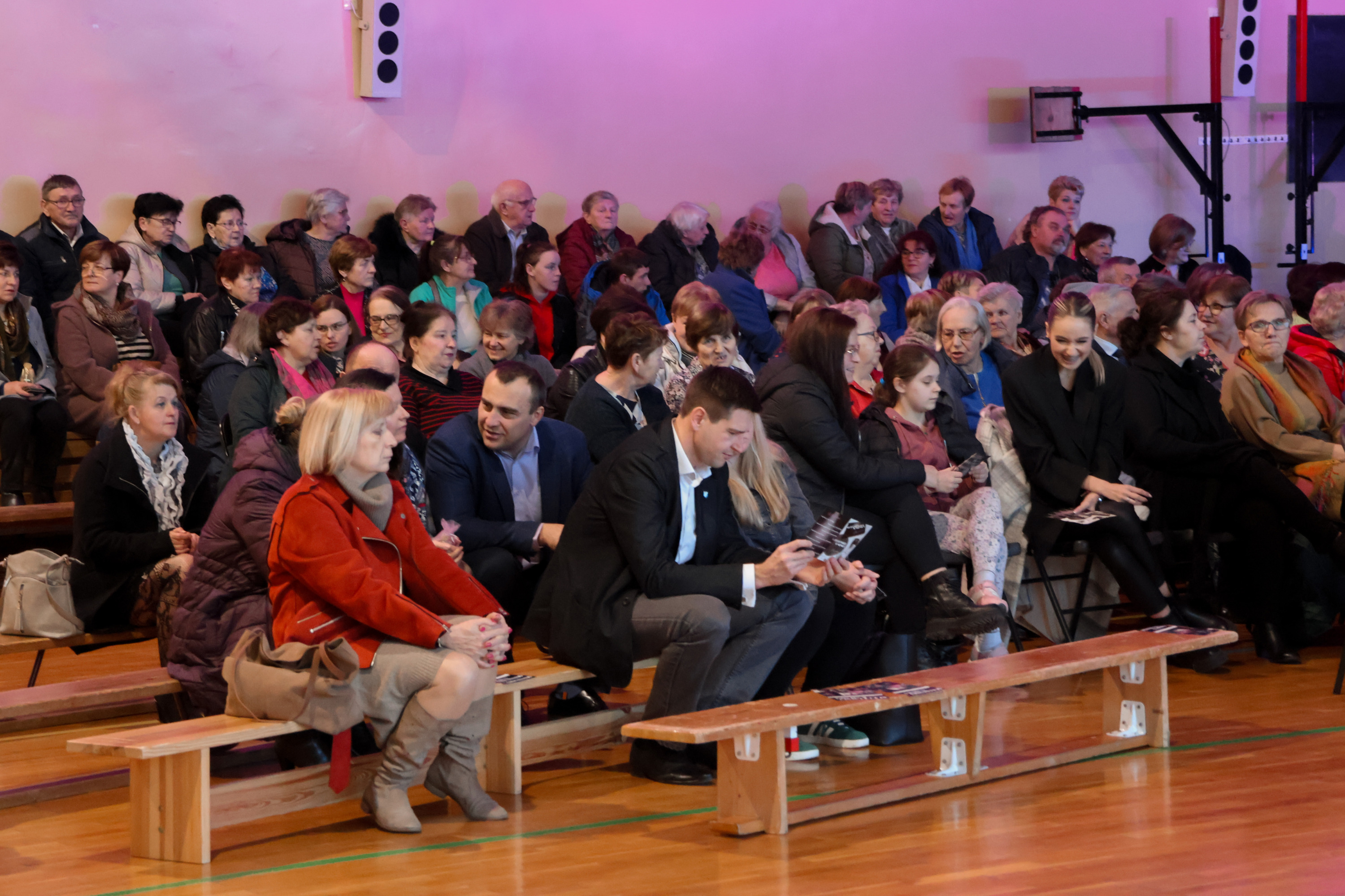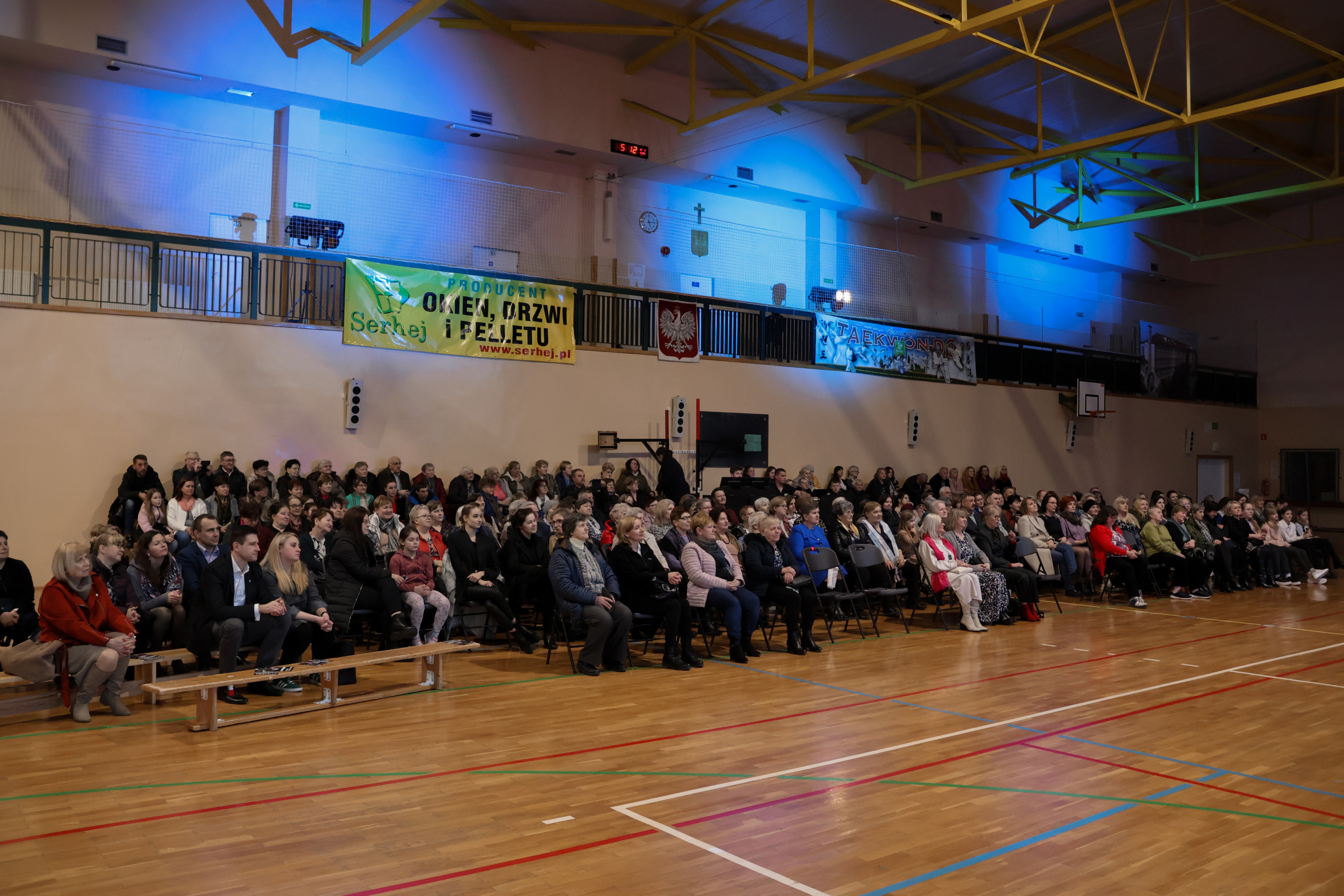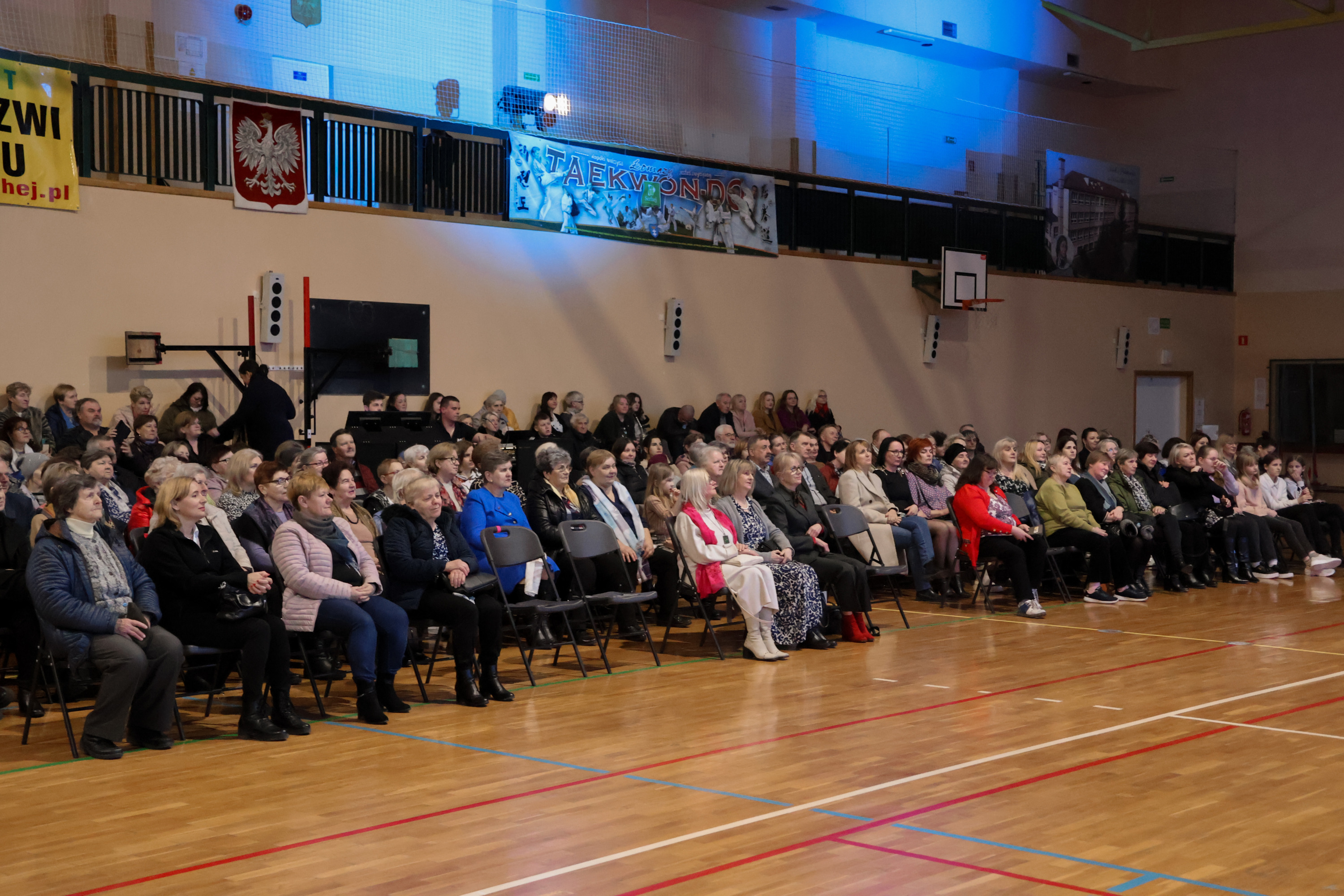 Przed godziną 17.00 hala Zespołu Placówek Oświatowych w Łomazach zaczęła się licznie zapełniać. Jeszcze przed zajęciem miejsc, wszystkie Panie zostały obdarowane małym, słodkim co nieco.