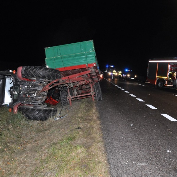 Po uderzeniu ciągnik zjechał do przydrożnego rowu. Pojazdem kierował 33-latek. Razem z nim podróżowała pasażerka, która w wyniku zdarzenia doznała obrażeń ciała. Do szpitala trafiły też dwie osoby podróżujące osobówką. Jak ustalili policjanci wykonujący czynności na miejscu zdarzenia kierujący pojazdami byli trzeźwi.