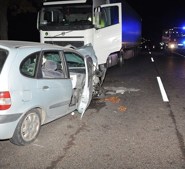 Do zdarzenia doszło 11 października przed godziną 21.00 na krajowej dwójce w miejscowości Żabce. Ze wstępnych ustaleń wynika, że kierujący Renaultem 61-latek wykonując nieprawidłowo manewr wyprzedzania ciągnika rolniczego marki Zetor z przyczepą, zderzył się wyprzedzanym pojazdem. Po tym auto zjechało na przeciwległy pas ruchu, gdzie zderzyło się czołowo z tirem. Ciężarówką marki Volvo kierował 36-latek.