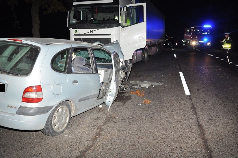 Do zdarzenia doszło 11 października przed godziną 21.00 na krajowej dwójce w miejscowości Żabce. Ze wstępnych ustaleń wynika, że kierujący Renaultem 61-latek wykonując nieprawidłowo manewr wyprzedzania ciągnika rolniczego marki Zetor z przyczepą, zderzył się wyprzedzanym pojazdem. Po tym auto zjechało na przeciwległy pas ruchu, gdzie zderzyło się czołowo z tirem. Ciężarówką marki Volvo kierował 36-latek.