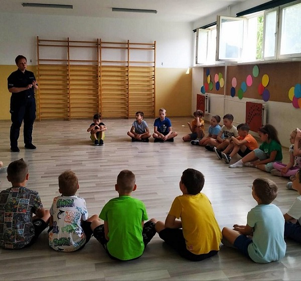 Podczas spotkań policjantka przypomniała o podstawowych zasadach bezpieczeństwa podczas wakacji zarówno w domu jak też koloniach. Funkcjonariuszka przybliżyła uczestnikom również dekalog bezpiecznego wypoczynku nad wodą.