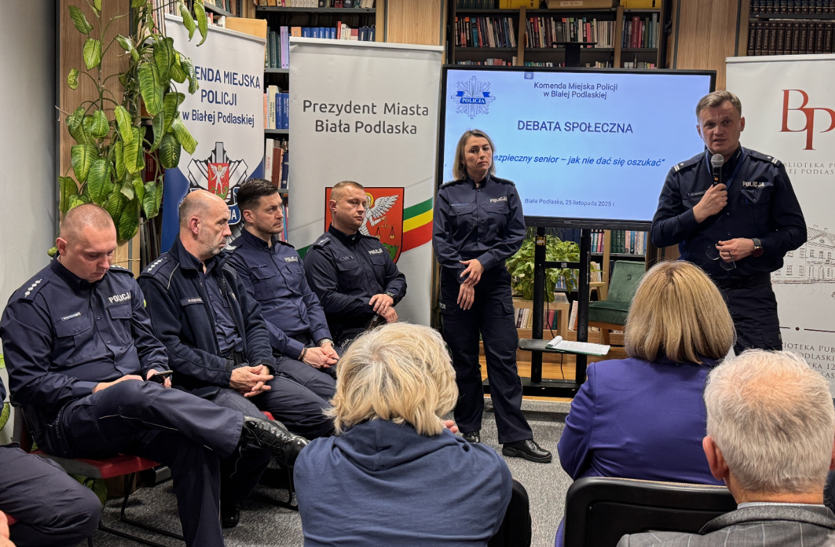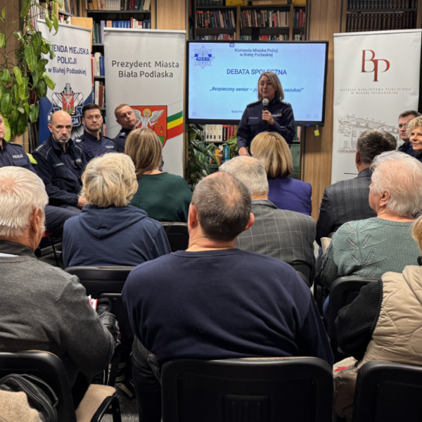25 listopada w Miejskiej Bibliotece Publicznej w Białej Podlaskiej odbyła się debata społeczna „Bezpieczny senior”, poświęcona zagadnieniom przeciwdziałania oszustwom wymierzonym w osoby starsze. Spotkanie zainaugurowało cykl „Akademia Seniora w Bibliotece”, skierowany do mieszkańców po 60. roku życia.