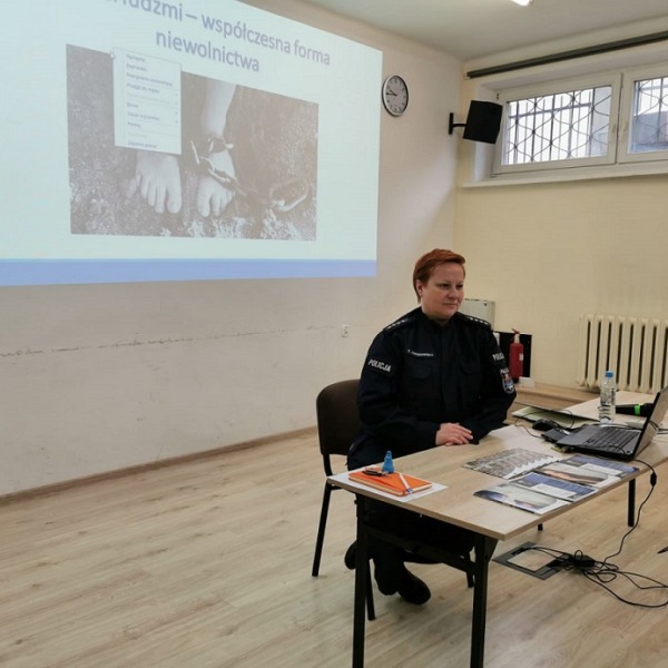 Aby uświadomić młodzieży czym jest handel ludźmi i jak ustrzec się by nie paść ofiarą tego przestępstwa funkcjonariusze przedstawili charakterystykę tego przestępstwa, godzącego w podstawowe wartości jakimi są wolność i godność każdego człowieka. Jest to współczesna forma niewolnictwa, a zwalczanie tego procederu stanowi wyzwanie dla całej Unii Europejskiej.