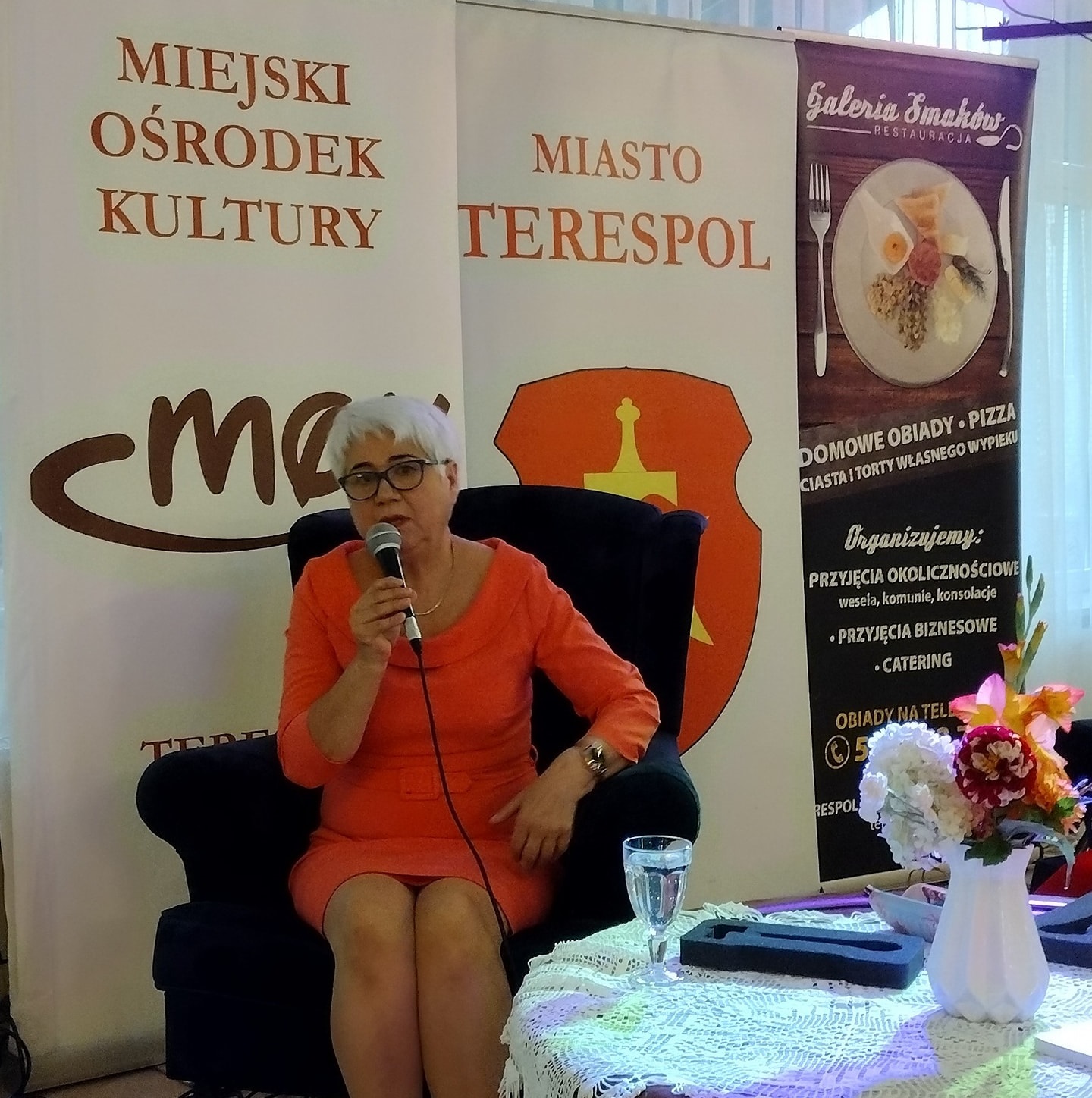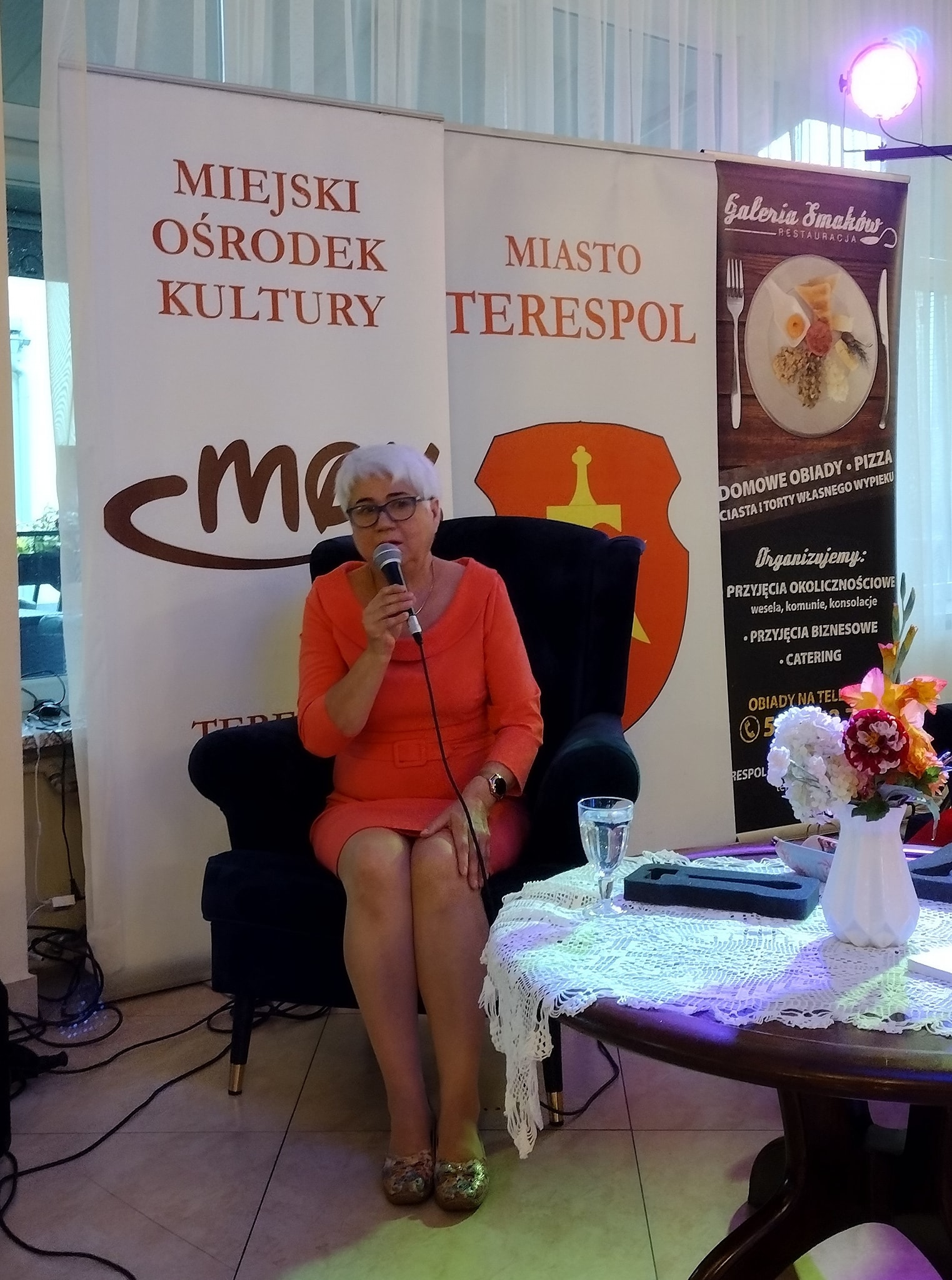 Spotkanie, prowadzone przez dyrektorkę MOK Annę Pietrusik, było pierwszą po wydaniu książki okazją do spotkania się autorki z czytelnikami, którzy licznie pojawili się w sali restauracji. Rozmawiano min. o tym skąd wziął się pomysł na książkę, jak przebiegał proces przygotowania się do pisania, jak autorka zbierała materiały, jak poznawała ówczesne realia i fakty oraz jak przebiegał sam proces tworzenia. Okazało się, że wiele osób przeczytało już książkę, która była dostępna już kilka miesięcy temu w terespolskich sklepach. Pozostali mieli okazję by móc ją dla siebie zakupić wraz z dedykacją autorki.