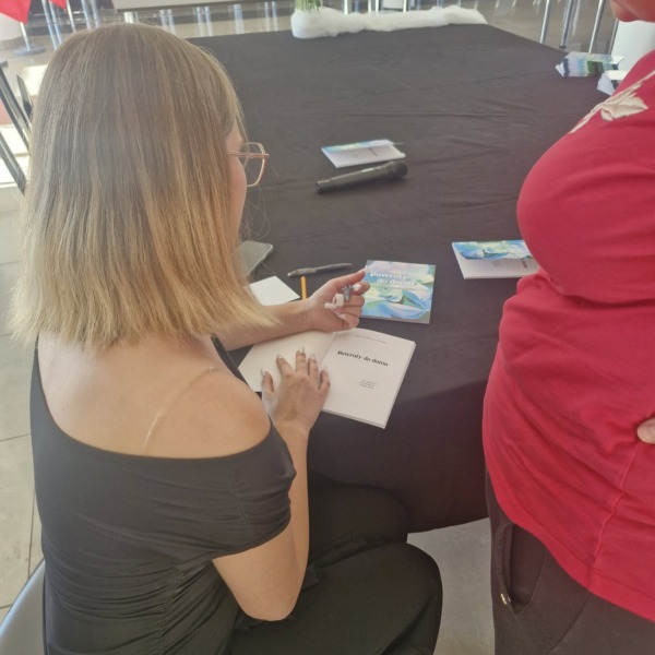 Czytelnicy i sympatycy twórczości Julii zadawali liczne pytania, a finałem spotkania była możliwość zrobienia pamiątkowego zdjęcia, zdobycia autografu oraz zakupu pierwszej książki zatytułowanej „Powroty do domu”.