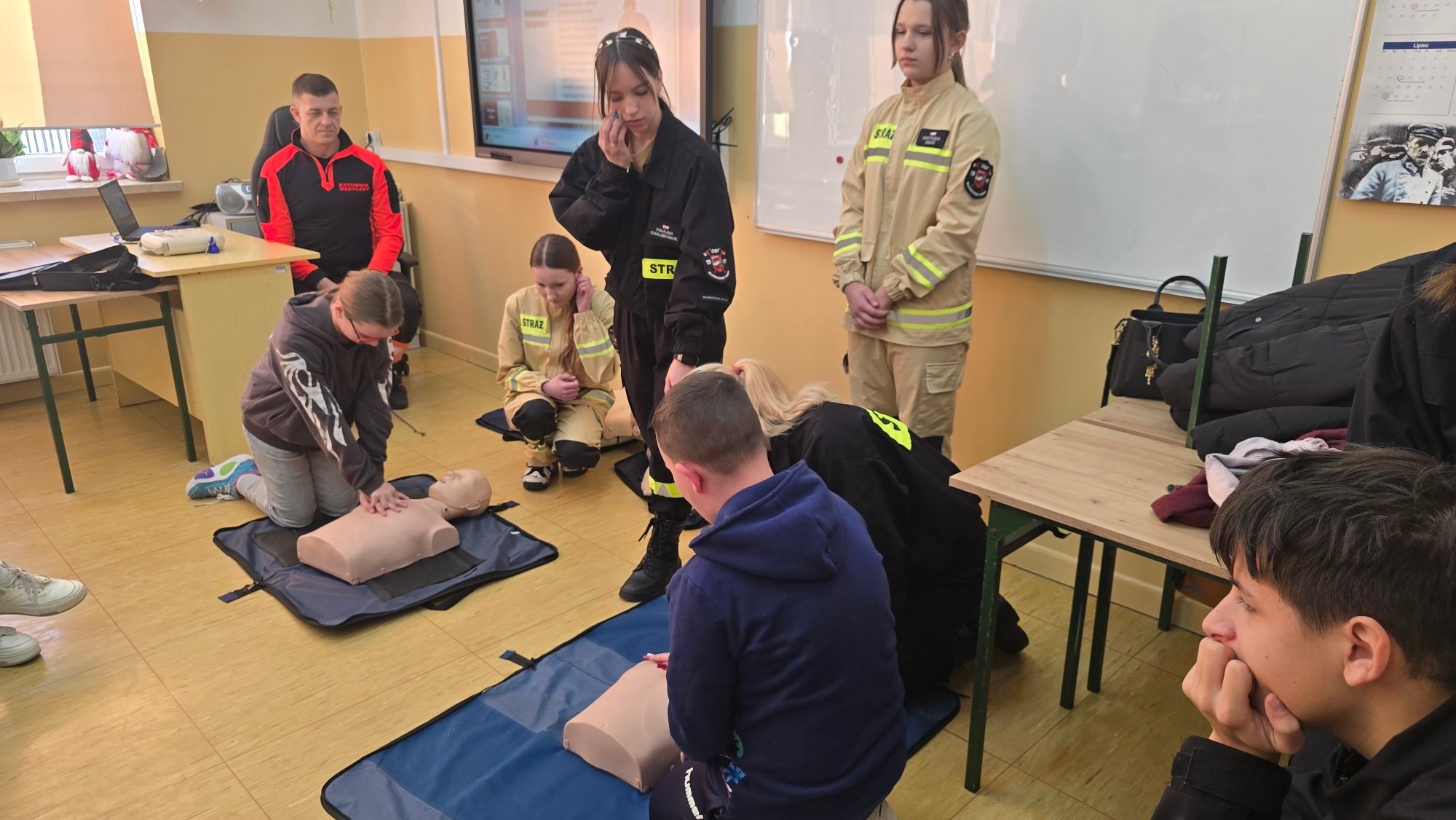 Zajęcia odbyły się w murach szkoły i spotkały się z dużym zainteresowaniem młodzieży. Strażacy krok po kroku wyjaśniali, jak prawidłowo reagować w sytuacjach zagrożenia zdrowia i życia, podkreślając, że szybka i zdecydowana reakcja świadka zdarzenia ma kluczowe znaczenie.