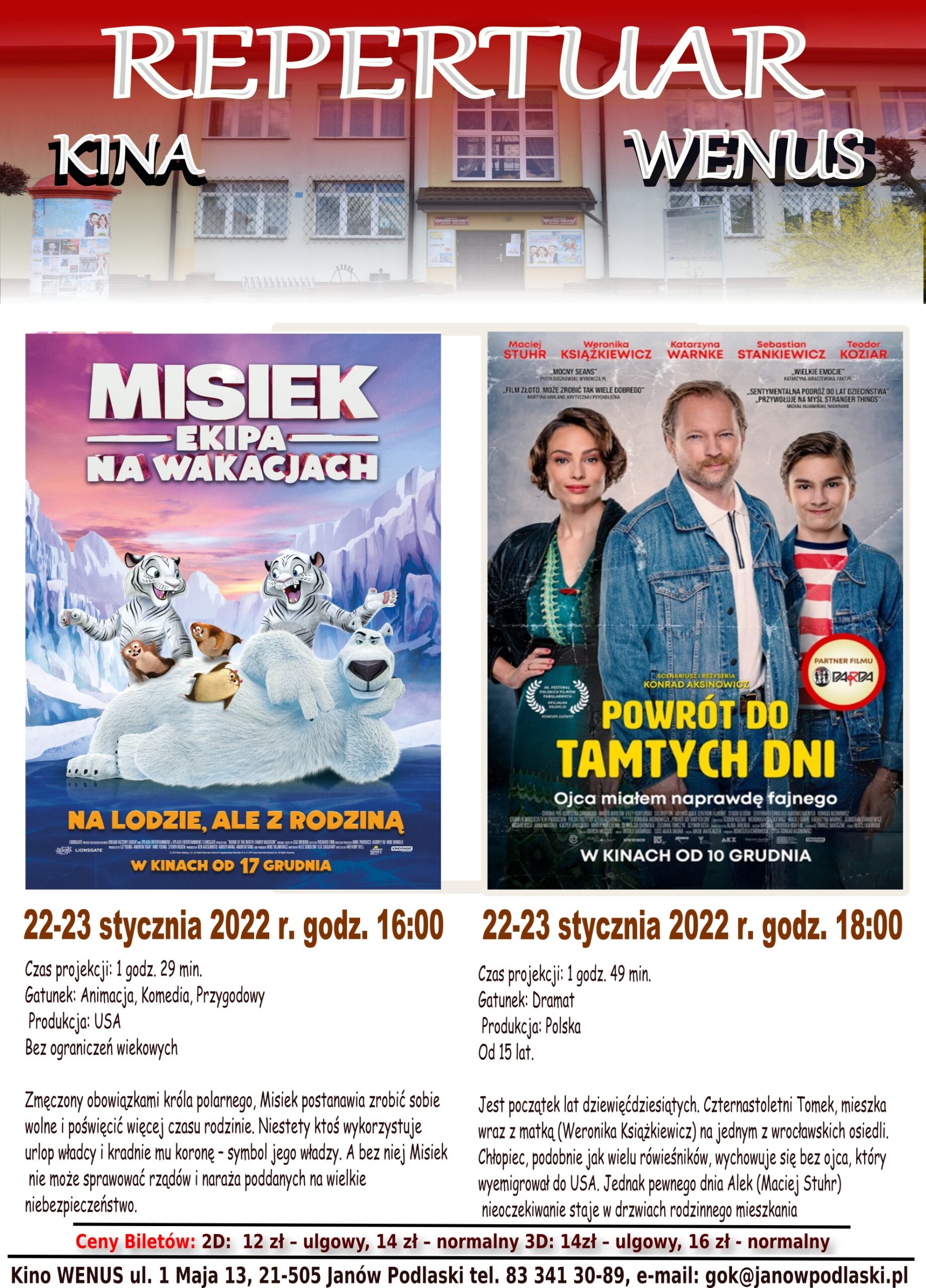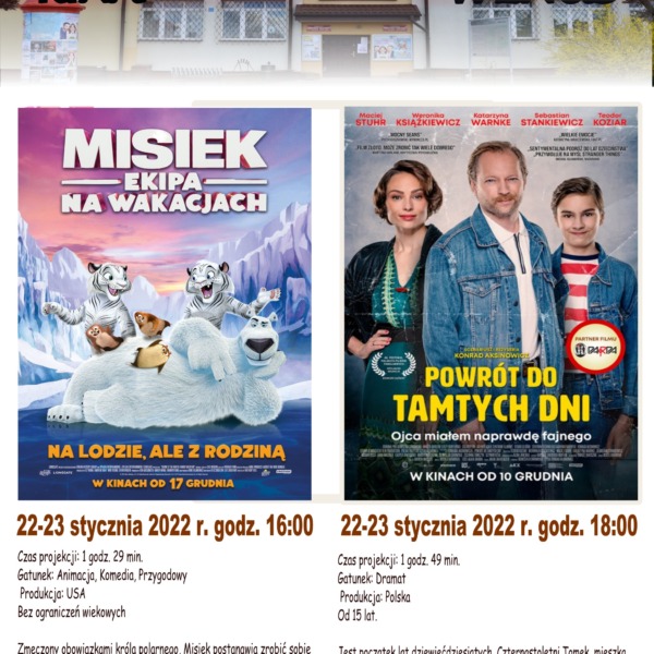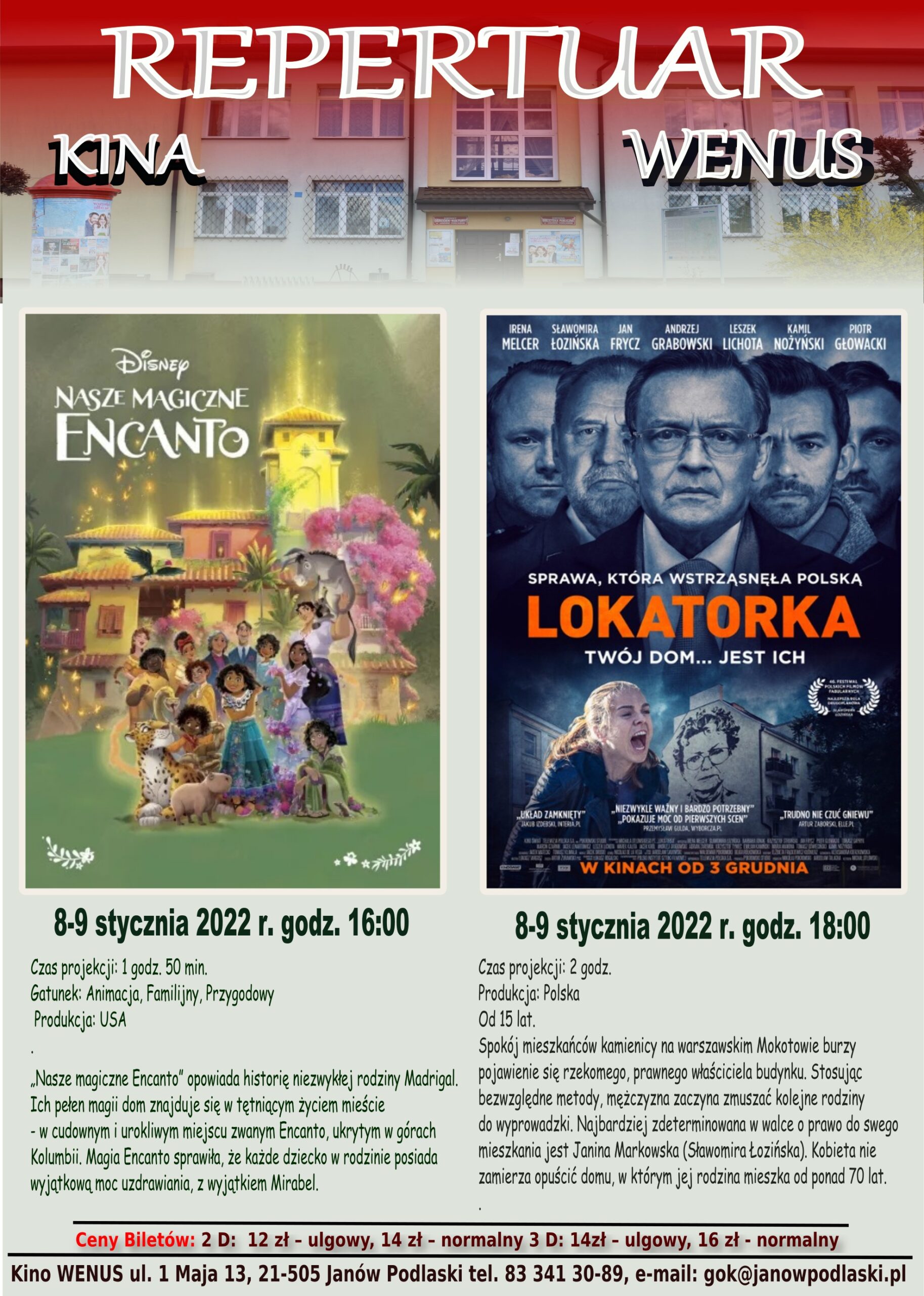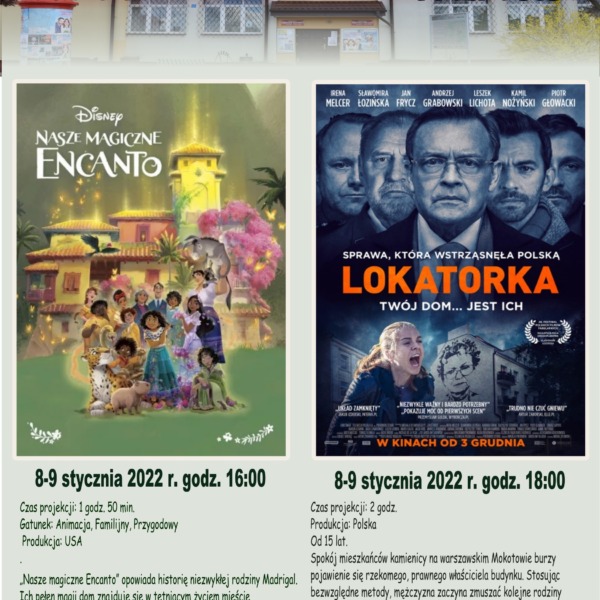 Gminny Ośrodek Kultury w Janowie Podlaskim przedstawia repertuar kina Wenus na miesiąc styczeń. W najbliższym miesiącu na ekranie m.in. “Nasze magiczne Encanto” czy “Powrót do tamtych dni”.