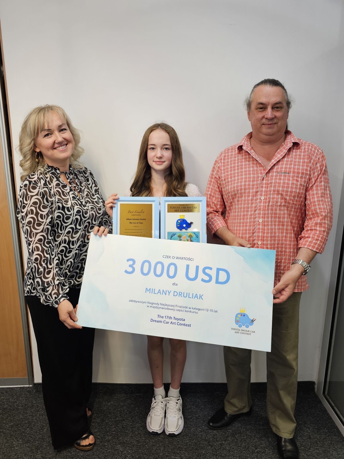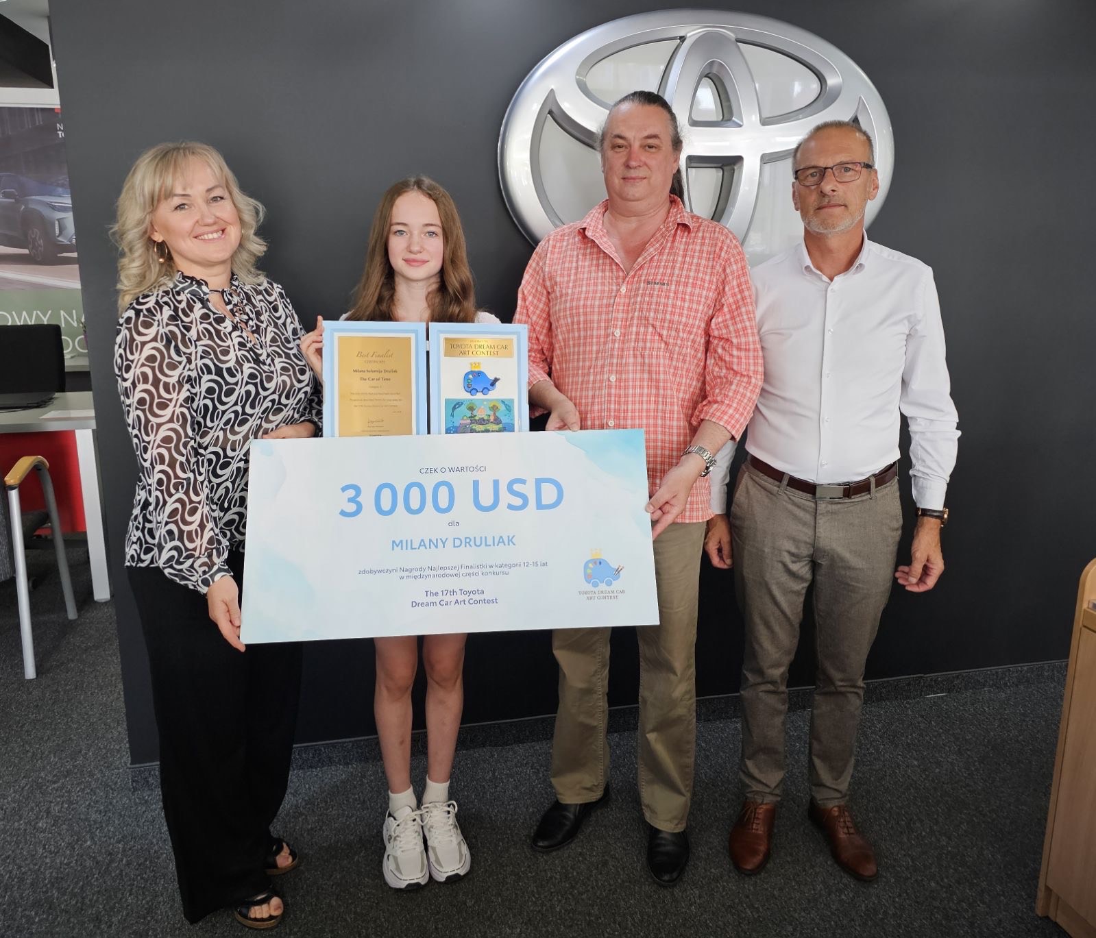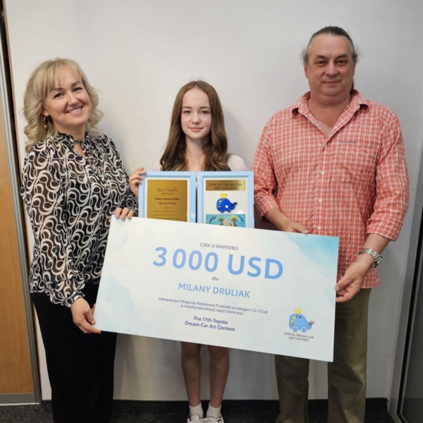 Trzy tysiące dolarów wygrała Milana Druliak, podopieczna Tatiany Luchny z Akademii Sztuk Plastycznych “Magia koloru “Bialskiego Centrum Kultury. W Japonii odbył się drugi etap światowej klasy konkursu “Dream Car 2024/17 Toyota Dream Car Art Contest “.