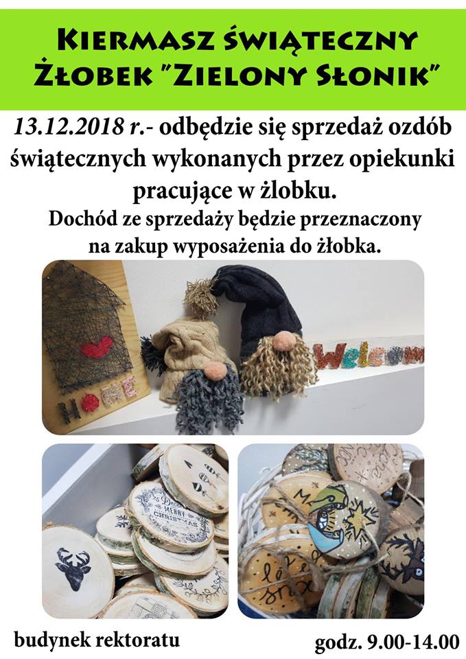 W najbliższy czwartek (13 grudnia) w godzinach 9 – 14 w budynku rektoratu Państwowej Szkoły Wyższej im. Jana Pawła II w Białej Podlaskiej przy ul. Sidorskiej 95/97 odbędzie się sprzedaż ozdób świątecznych wykonanych przez opiekunki pracujące w żłobku.