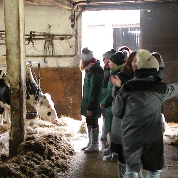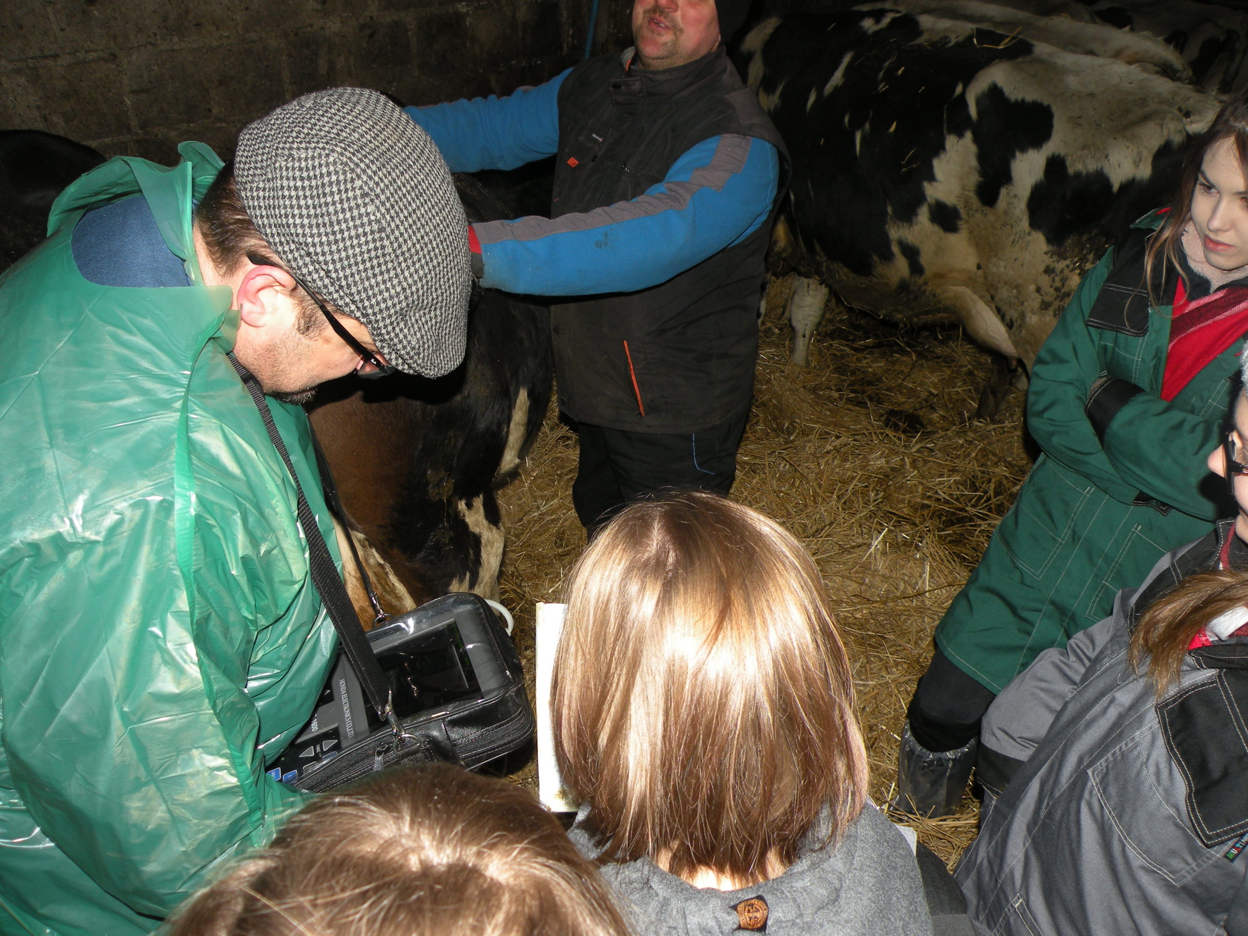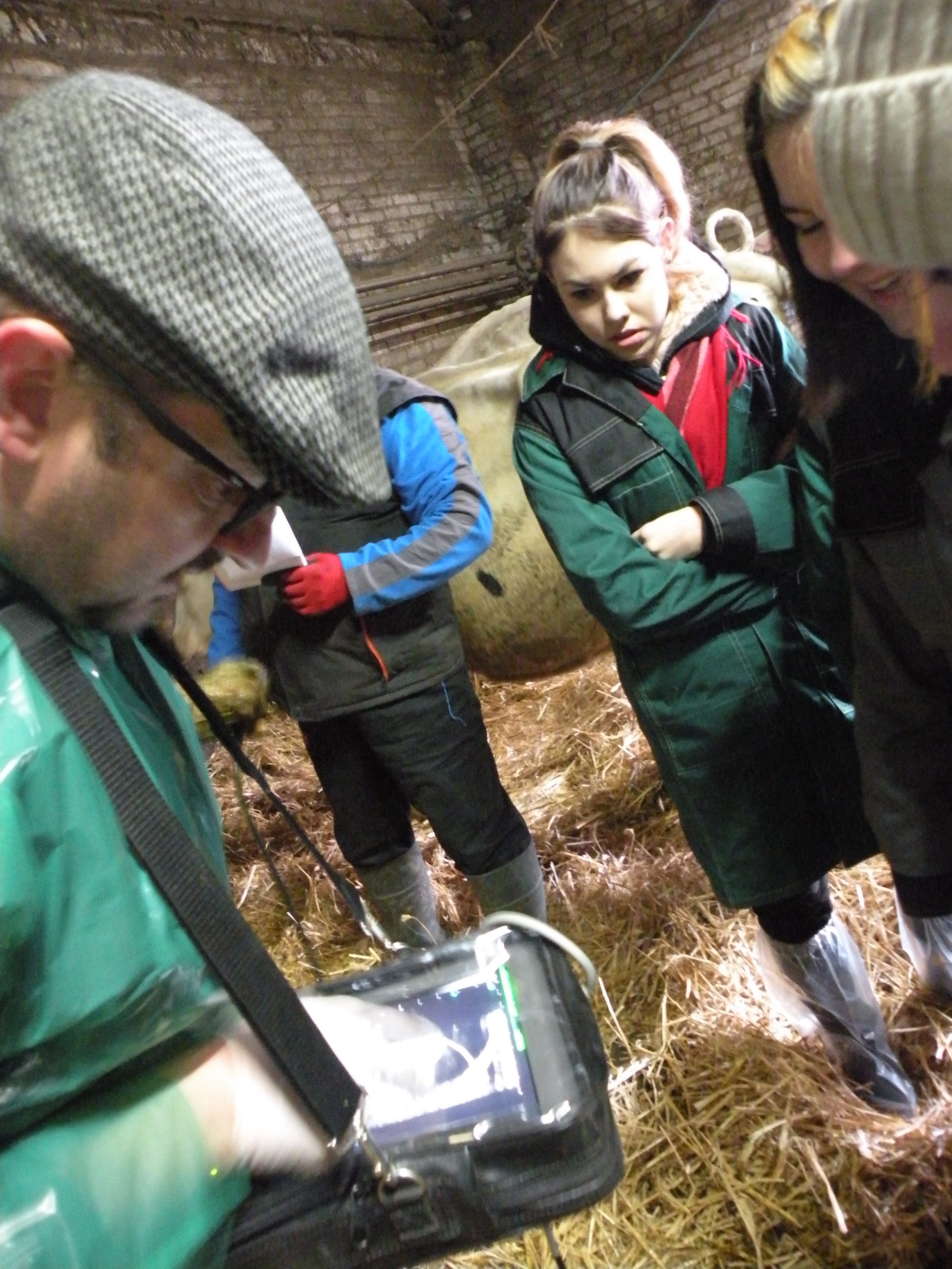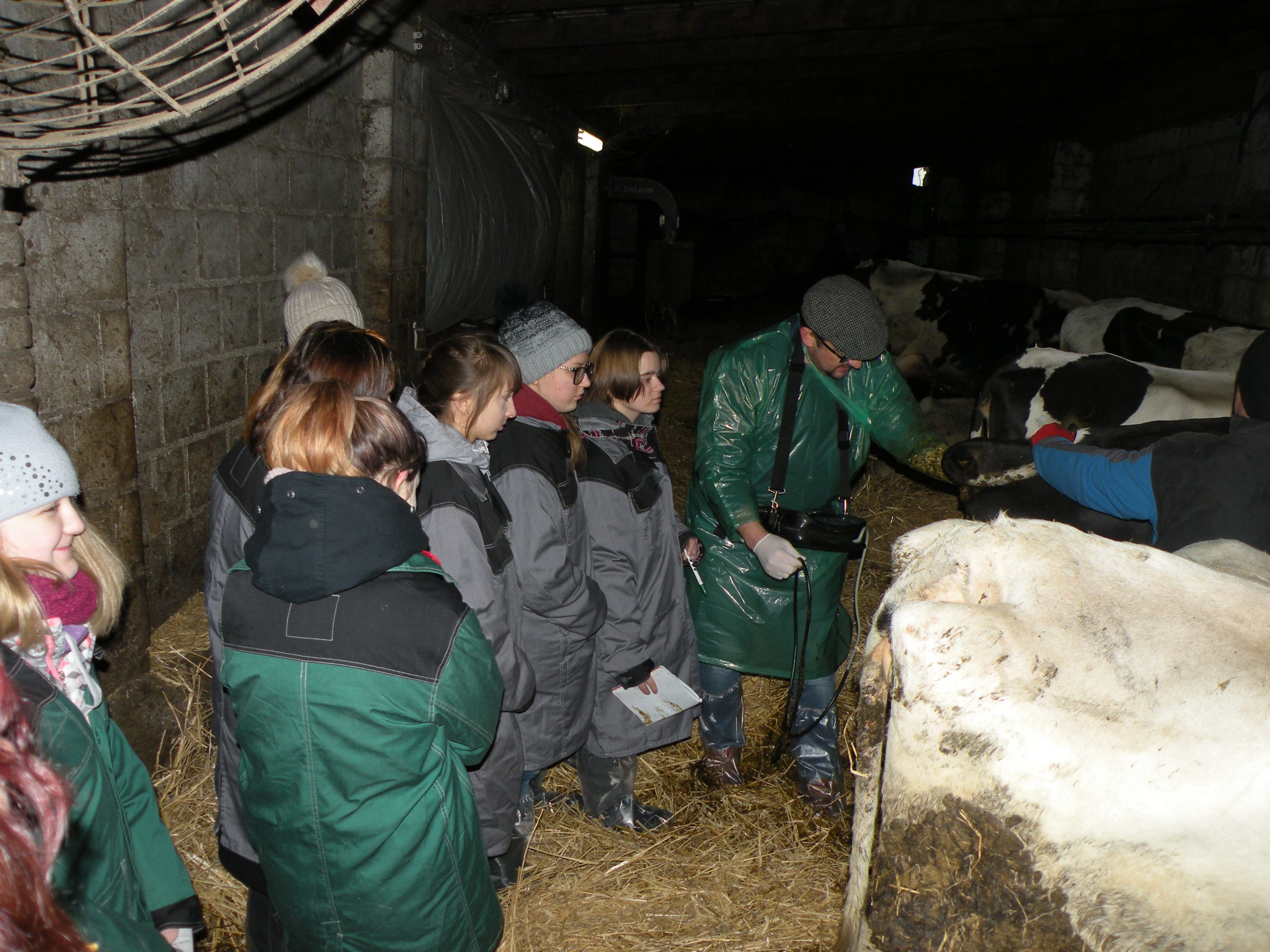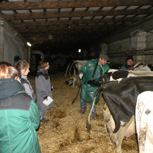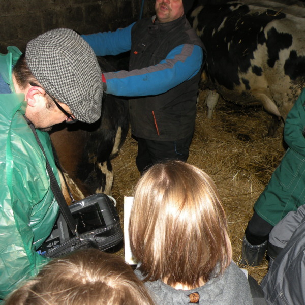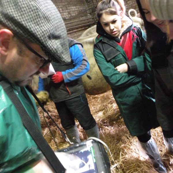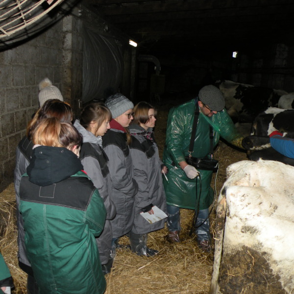 Zajęcia odbyły się w gospodarstwie rolnym Pana Jarosława Stasiuka, który prowadzi hodowlę bydła mlecznego w Worgulach. W obecności lekarza weterynarii Pana Ryszarda Kucharczyka, który sprawuje opiekę weterynaryjną w tym gospodarstwie, młodzież miała możliwość sprawdzenia na podstawie badania USG – cielności krów. Obserwowała także i podejmowała próby wykonania zabiegów podawania antybiotyków, szczepienia cieląt i stosowania antykoncepcji u jałówek.