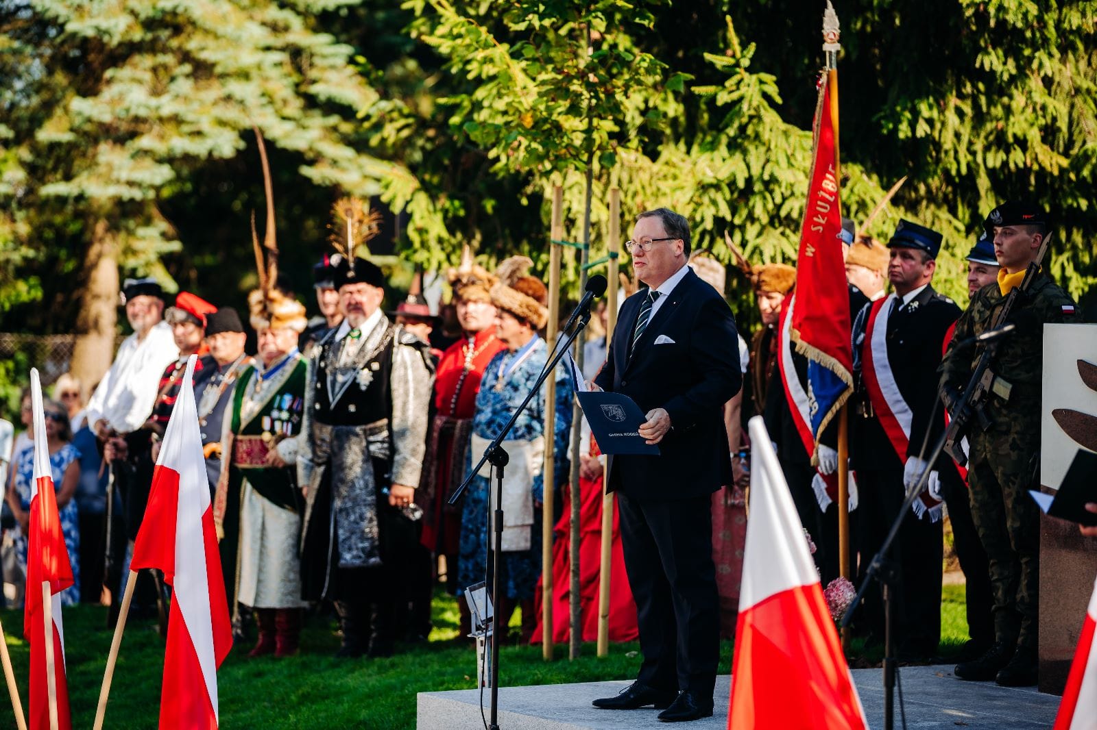 Ceremonia rozpoczęła się odczytaniem listu, który wystosował do uczestników i mieszkańców regionu prezydent Andrzej Duda. W swoim wystąpieniu prezydent odniósł się do obecnej sytuacji na granicy polsko-białoruskiej, wyrażając wdzięczność wobec tych, którzy pełnią służbę na granicy. Prezydent wspomniał również, odnosząc się do odsłonięcia pomnika, że pamięć o wydarzeniach z z 1863 roku będzie kształtować świadomość historyczną następnych pokoleń.