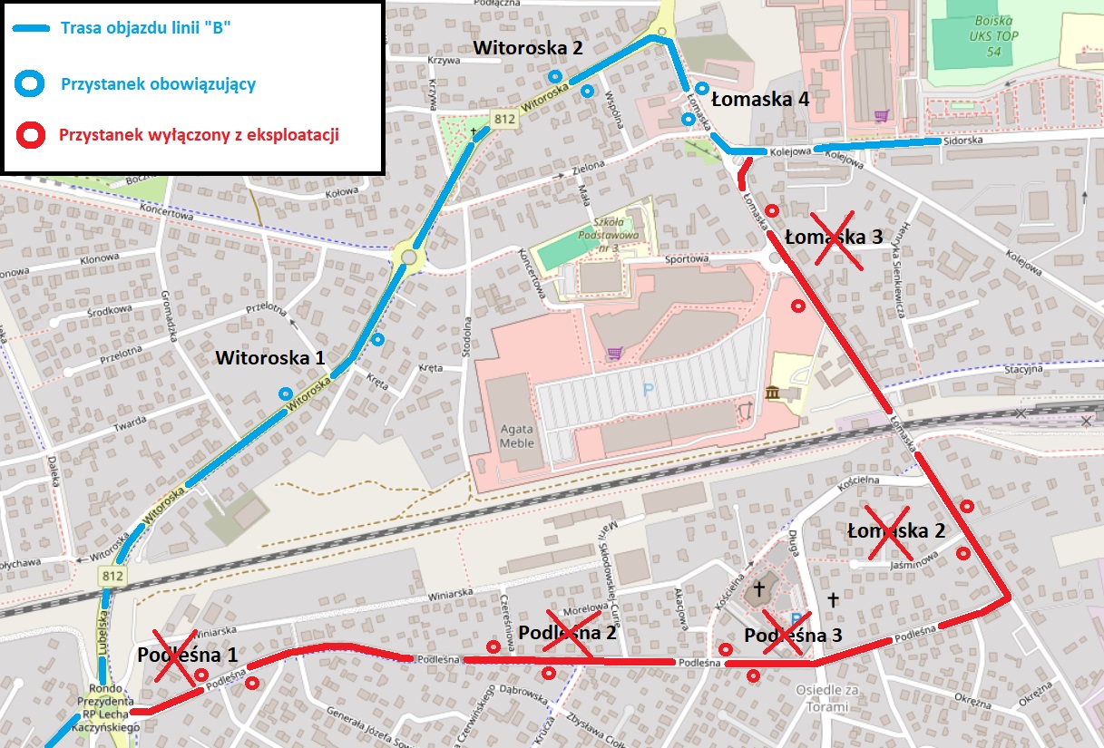 Przystanki dodatkowe na linii „B”: Witoroska 1, Witoroska 2 i Łomaska 4.