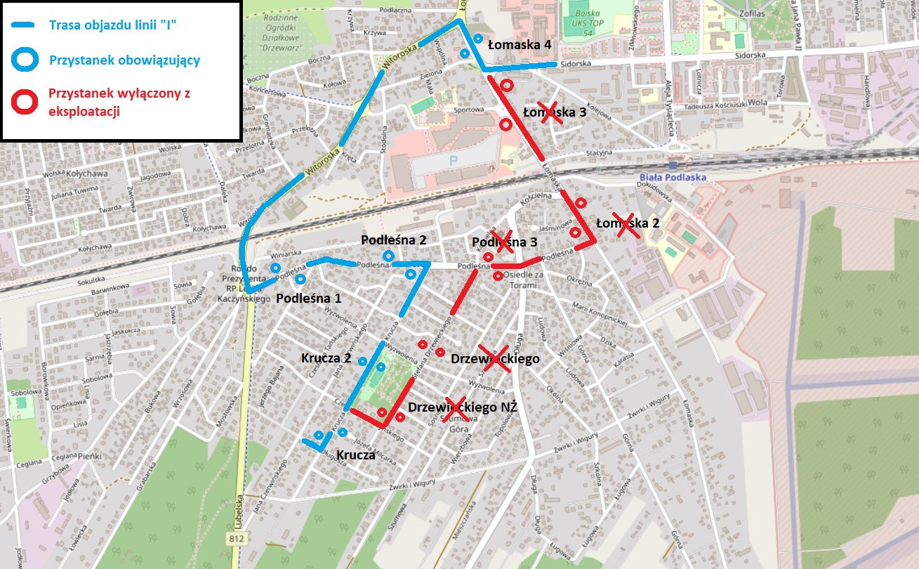 Przystanki dodatkowe na linii „I”: Podleśna 1, Podleśna 2, Łomaska 4 oraz Krucza 2 (przystanek tymczasowy).