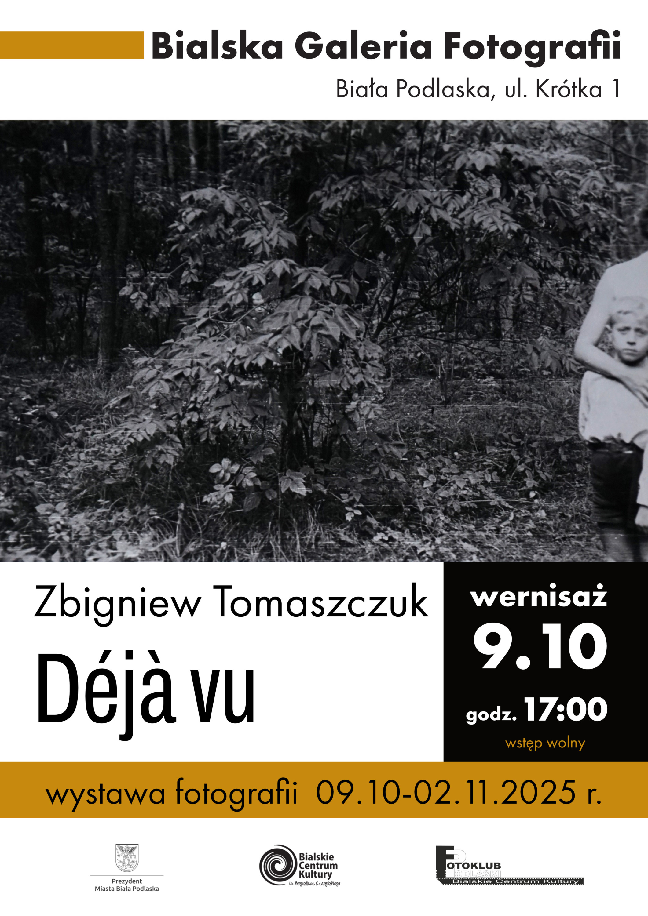 Bialska Galeria Fotografii ma zaszczyt zaprosić na wernisaż wystawy „Déjà vu” Zbigniewa Tomaszczuka – wybitnego fotografa, teoretyka sztuki i profesora Akademii Sztuk Pięknych w Warszawie.
