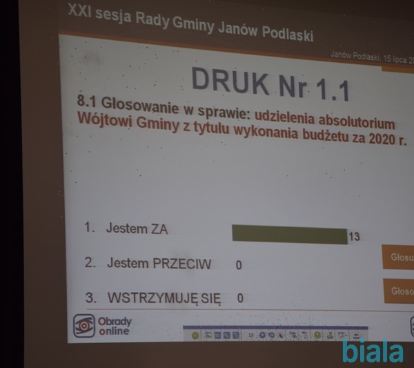 W czwartek 15 lipca odbyła się sesja Rady Gminy Janów Podlaski na której zgromadzeni radni jednogłośnie przyznali absolutorium dla Wójta Gminy Leszka Chwedczuka . Tego samego dnia odbyło się również oficjalne otwarcie nowego skweru w Janowie Podlaskim.