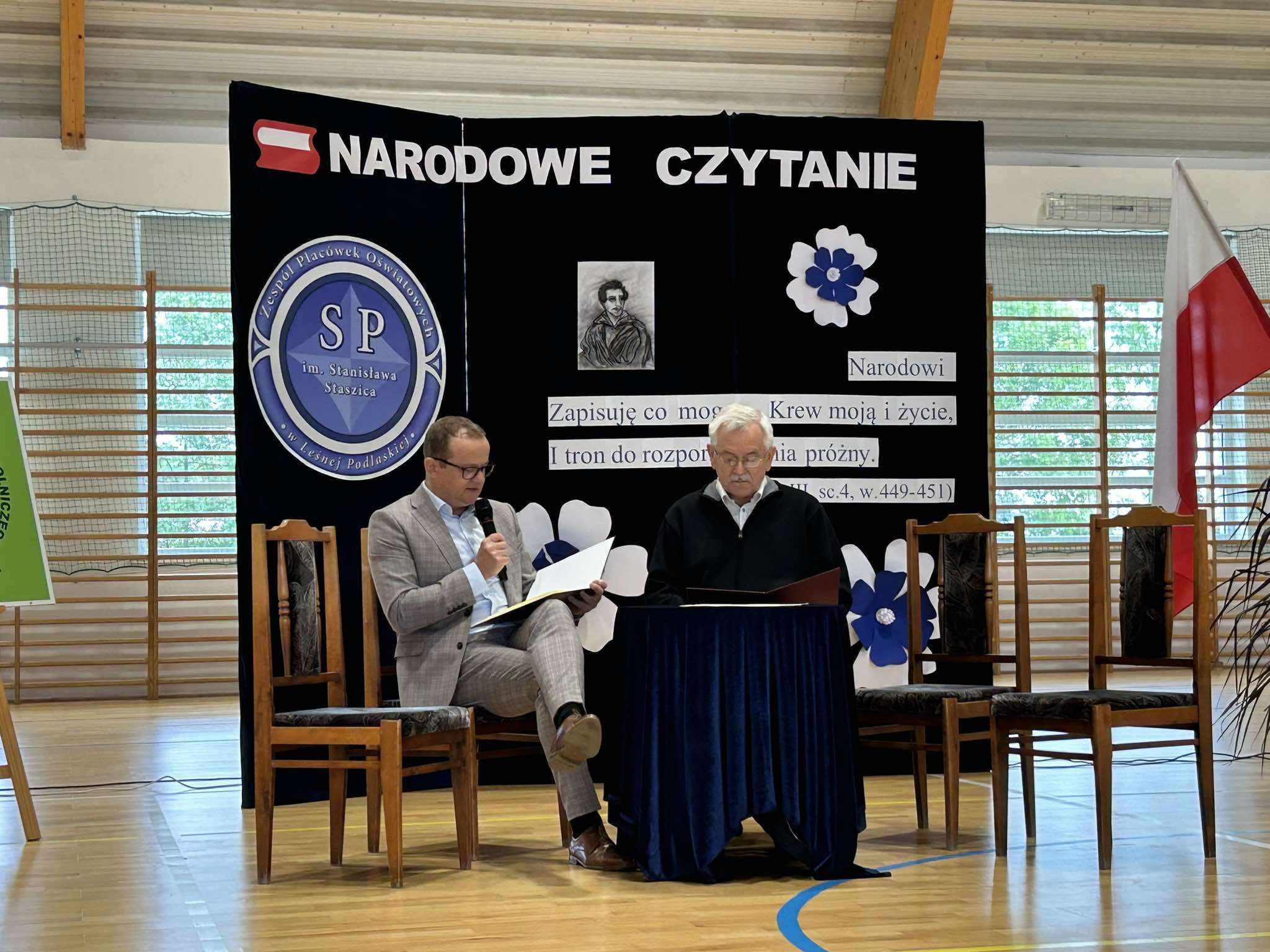 Narodowe Czytanie to ogólnopolska akcja promująca polską literaturę, zapoczątkowana w 2012 roku przez prezydenta Bronisława Komorowskiego. W 2024 roku, podczas trzynastej edycji, czytano dramat Juliusza Słowackiego „Kordian”. Wydarzenie w Leśnej Podlaskiej zorganizowali dyrektorzy miejscowych szkół: Małgorzata Adach i Radosław Klekot. Fragmenty dzieła odczytali m.in. Wójt Gminy Paweł Kazimierski, lokalni przedstawiciele samorządu, nauczyciele oraz uczniowie. Uroczystość miała na celu wspólne odkrywanie arcydzieła polskiego romantyzmu.