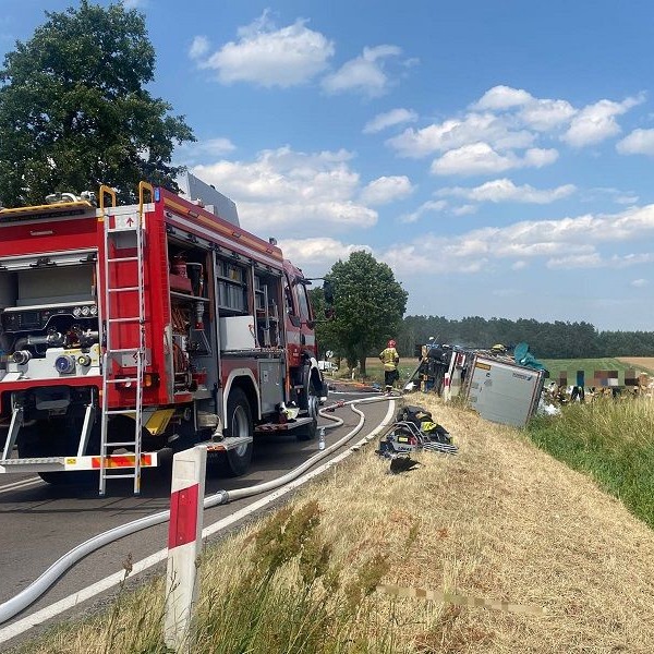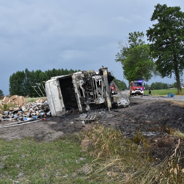 Do zdarzenia doszło 7 lipca po godz.13.00 na drodze W-811 w miejscowości Hrud. Ze wstępnych ustaleń funkcjonariuszy wynika, że kierując samochodem osobowym marki Jeep 66-latek, z nieznanych przyczyn zjechał na przeciwległy pas ruchu, gdzie zderzył się ze Skanią. W wyniku uderzenia ciężarówka przewróciła się i zapaliła. Drugim autem kierował 24-latek.