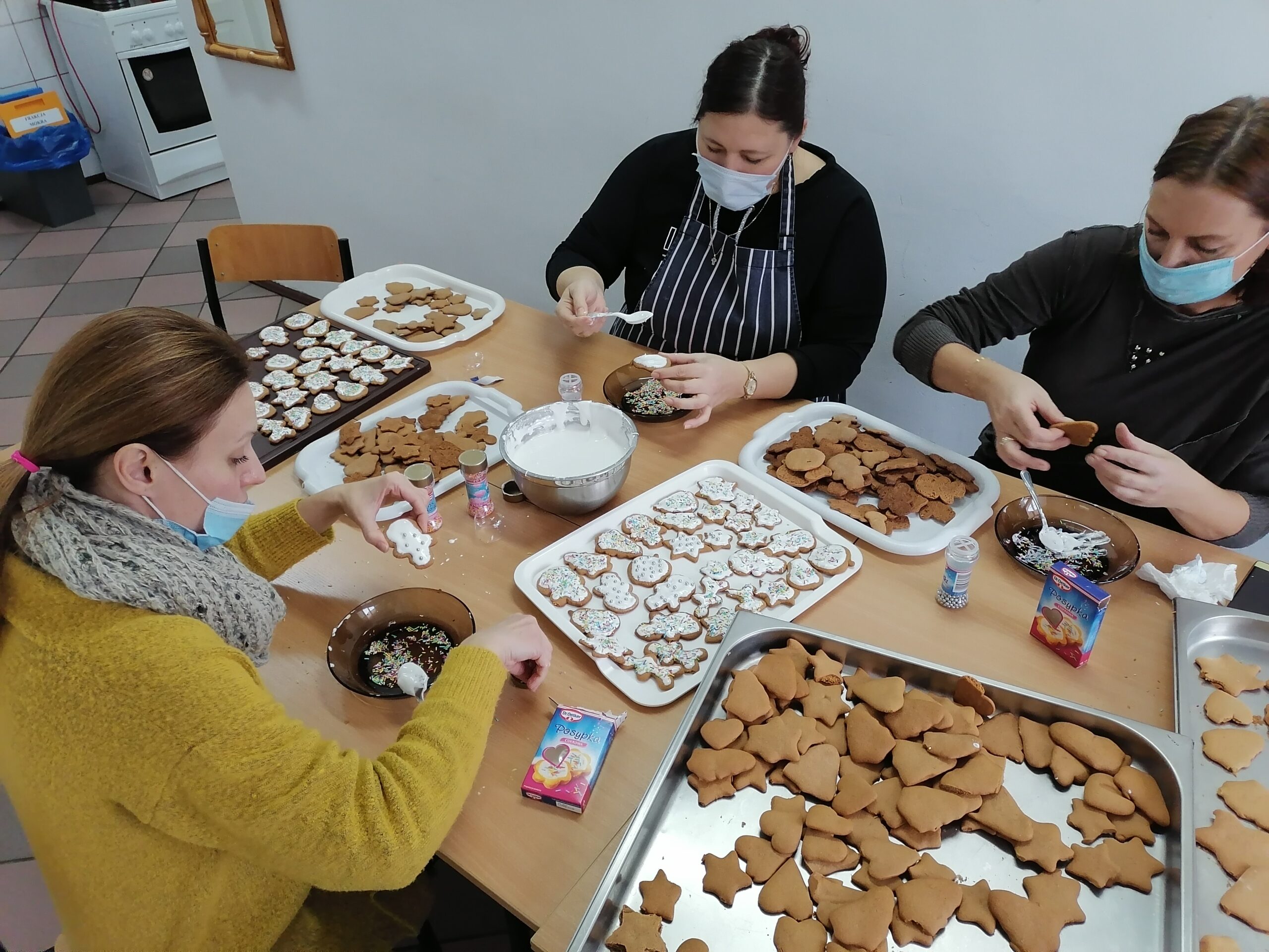 W ramach inicjatywy uczniowie I klasy technikum w zawodzie technik żywienia i usług gastronomicznych wraz z paniami kucharkami ze szkolnego internatu upiekli świąteczne pierniczki, które następnie zostały przekazane do Gminnego Ośrodka Pomocy Społecznej. Słodycze trafiły do paczek żywnościowych przygotowanych dla rodzin w trudnej sytuacji materialnej.