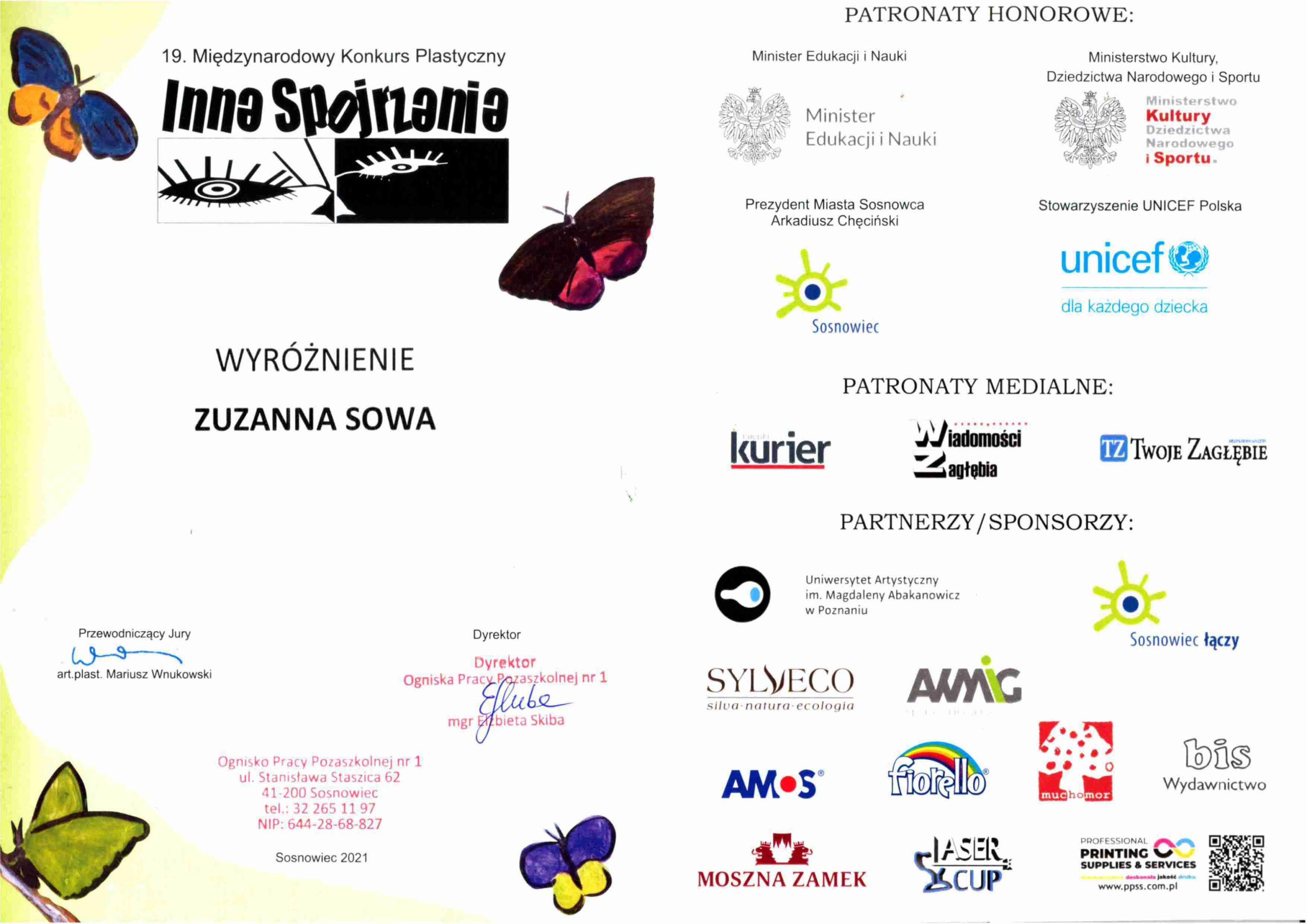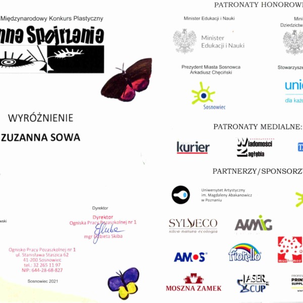 Znamy laureatów 19. Międzynarodowego Konkursu Plastycznego “Inne Spojrzenie” 2021 zorganizowanego przez Ognisko Pracy Pozaszkolnej nr 1 w Sosnowcu. W gronie najlepszych znalazła się podopieczna Bialskiego Centrum Kultury- Zuzanna Sowa, uczestniczka zajęć w Pracowni Grafiki Komputerowej „Piksel”, prowadzonej przez panią Lillę Wielgan-Michaluk.